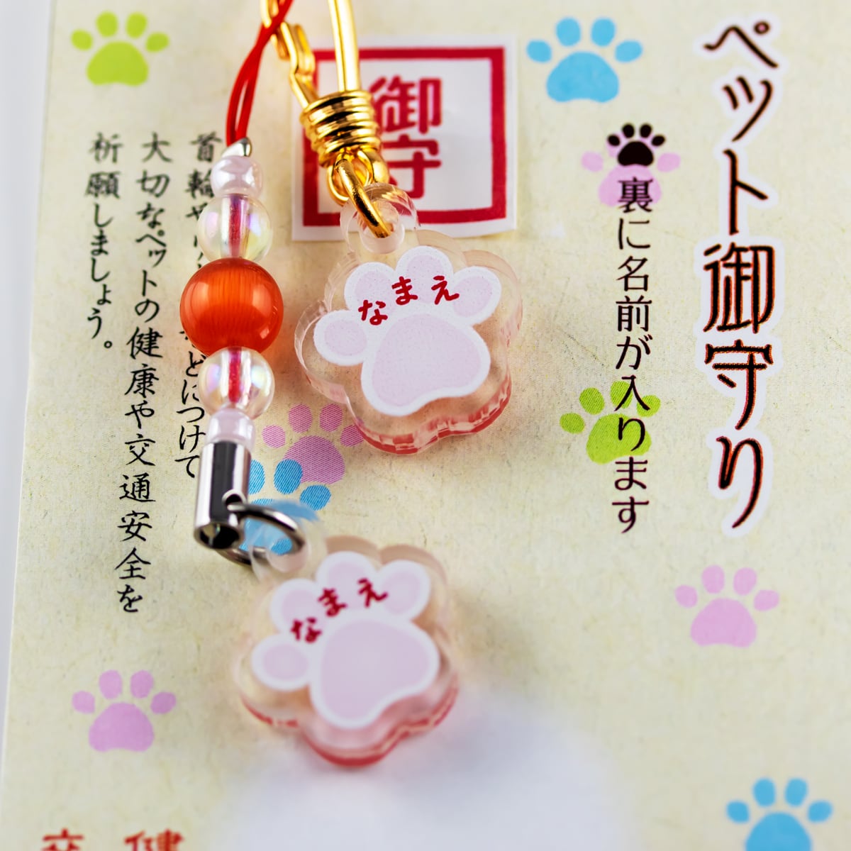 ペットを守るための特別なお守りです。肉球ネームプレートには、ペットのお名前をご記入ください。