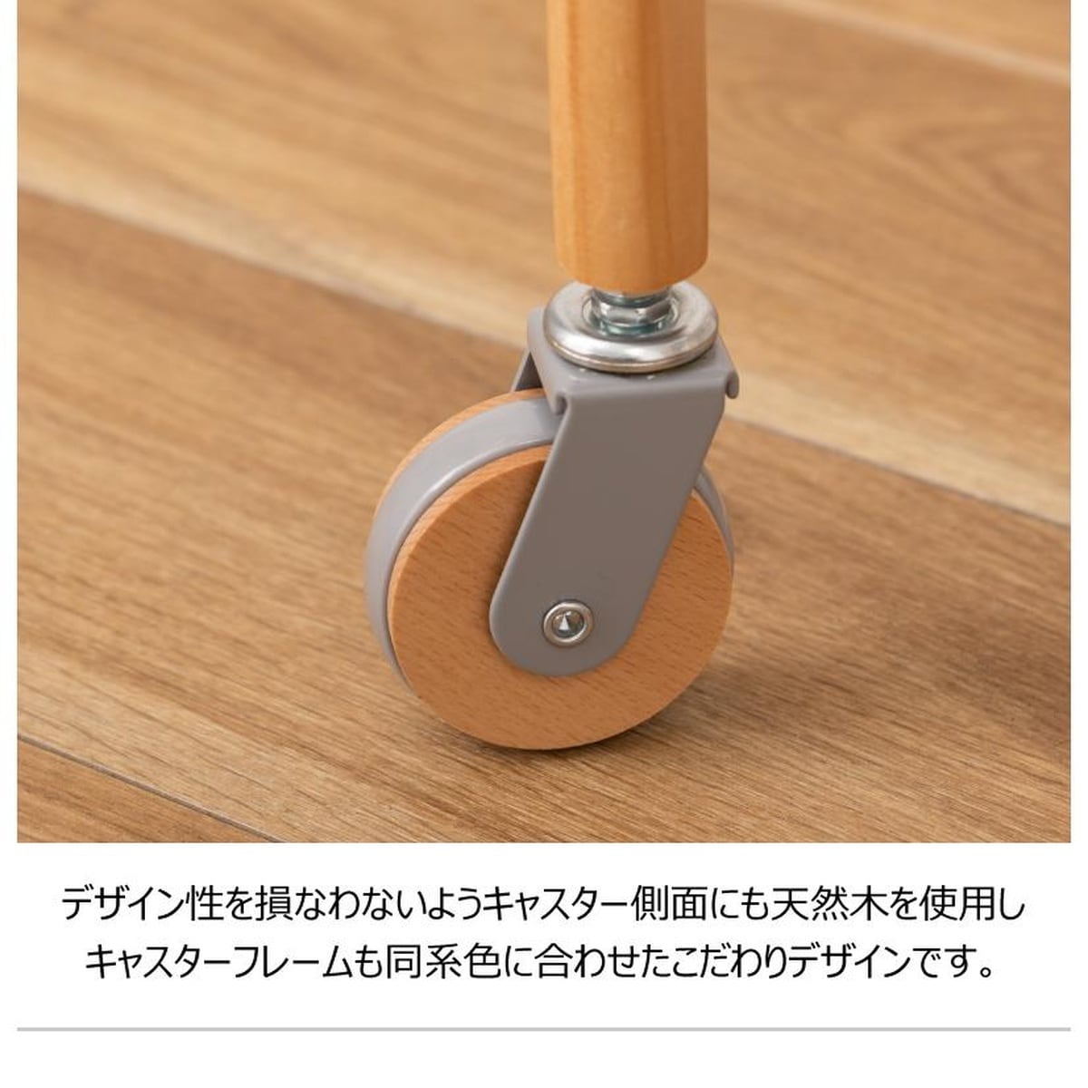 ●天板とウッドフレームには、ハッキリとした美しい木目と明るい色味が特徴の天然木パイン材を採用。デザイン性を損なわないよう、キャスターの側面にも天然木を使用したこだわりデザイン。