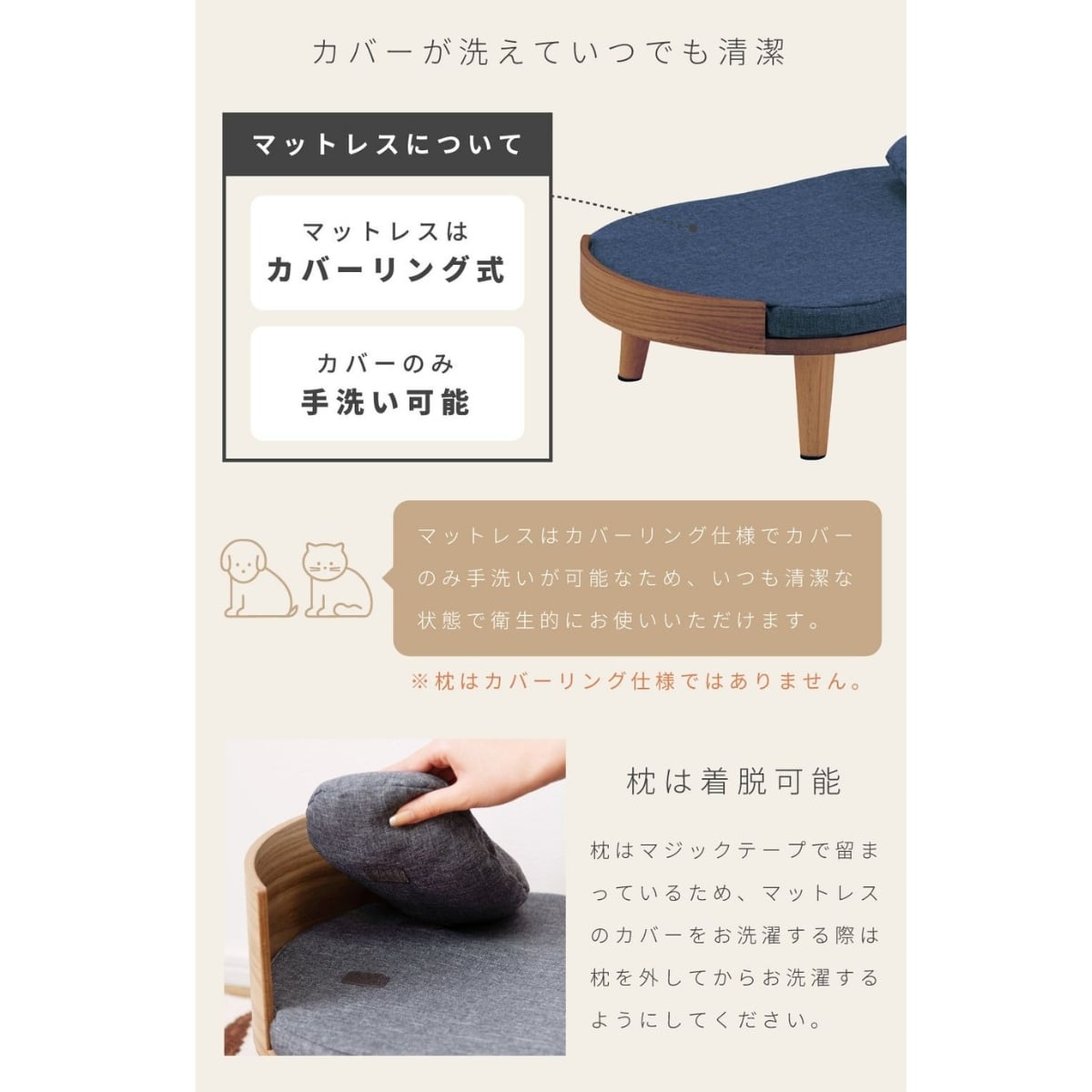 ●専用マットレスはカバーリング式なので手洗いができ清潔に保つことが出来ます(※マクラはカバーリング式ではありません)。
