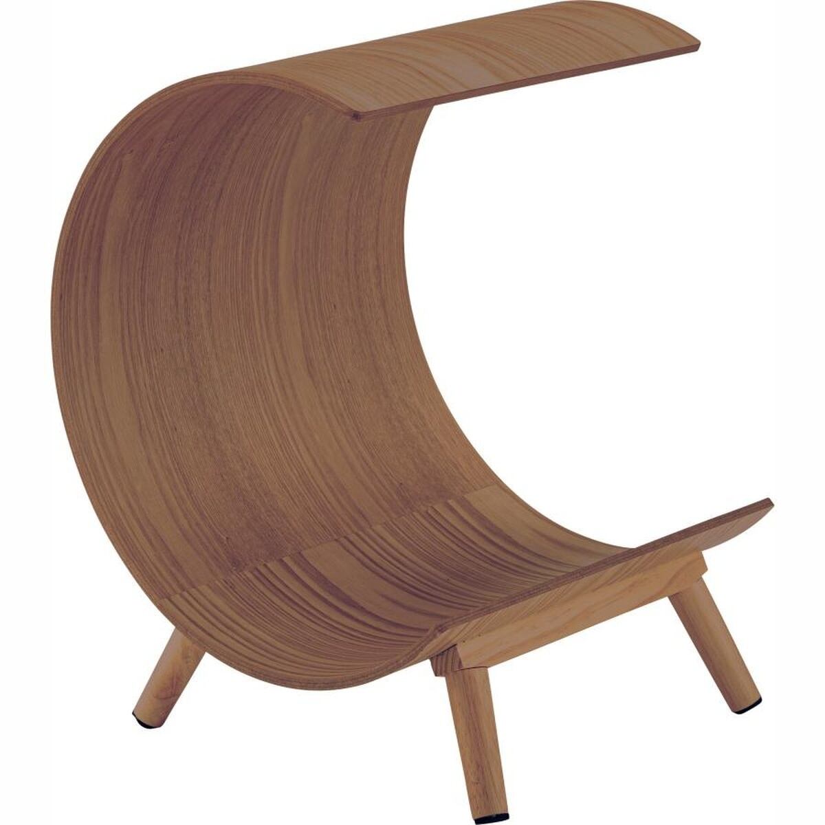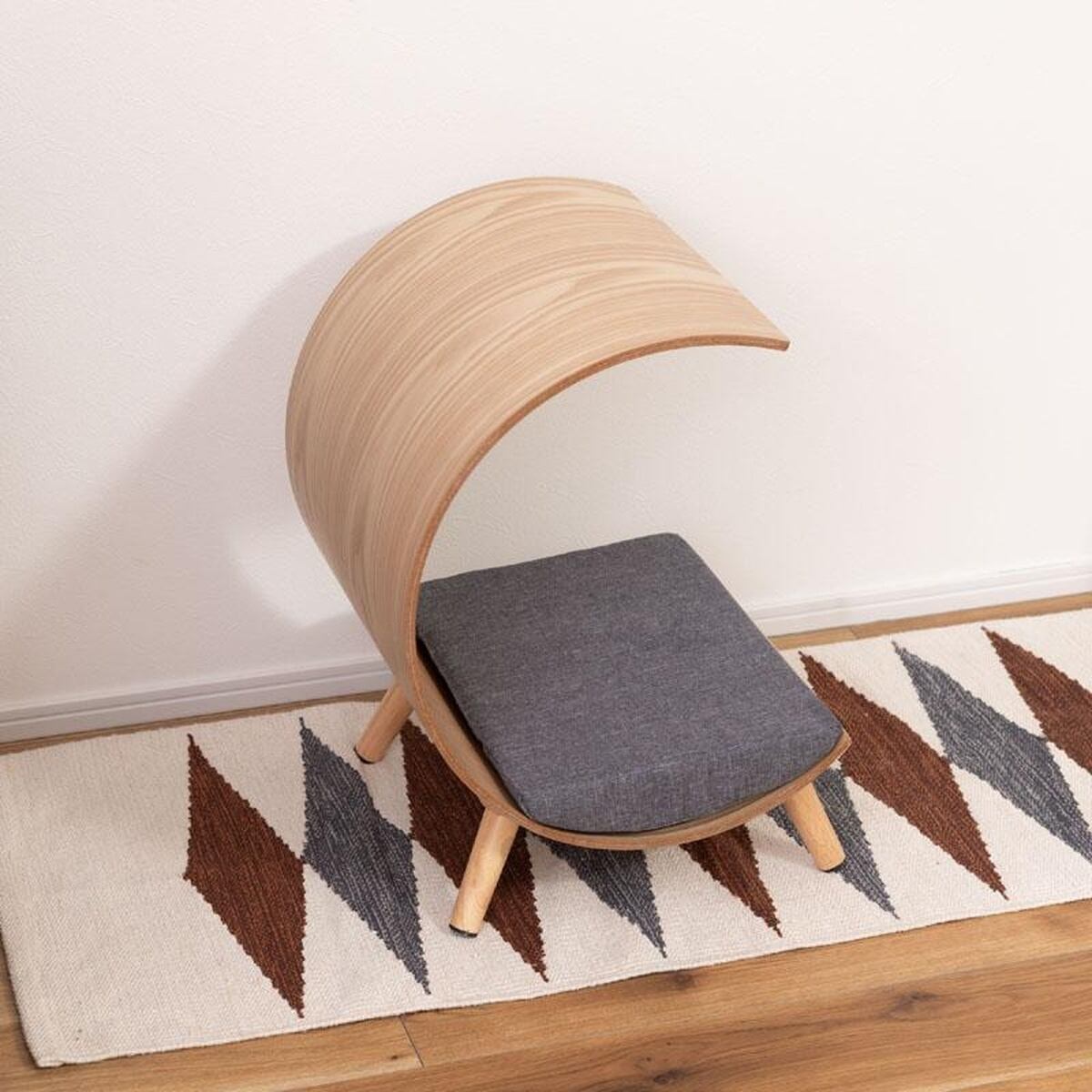 脚部には天然木ラバーウッドを使用し、フレームには天然木アッシュ(突板)を使用した、デザイン性あふれる形のペットベッド。