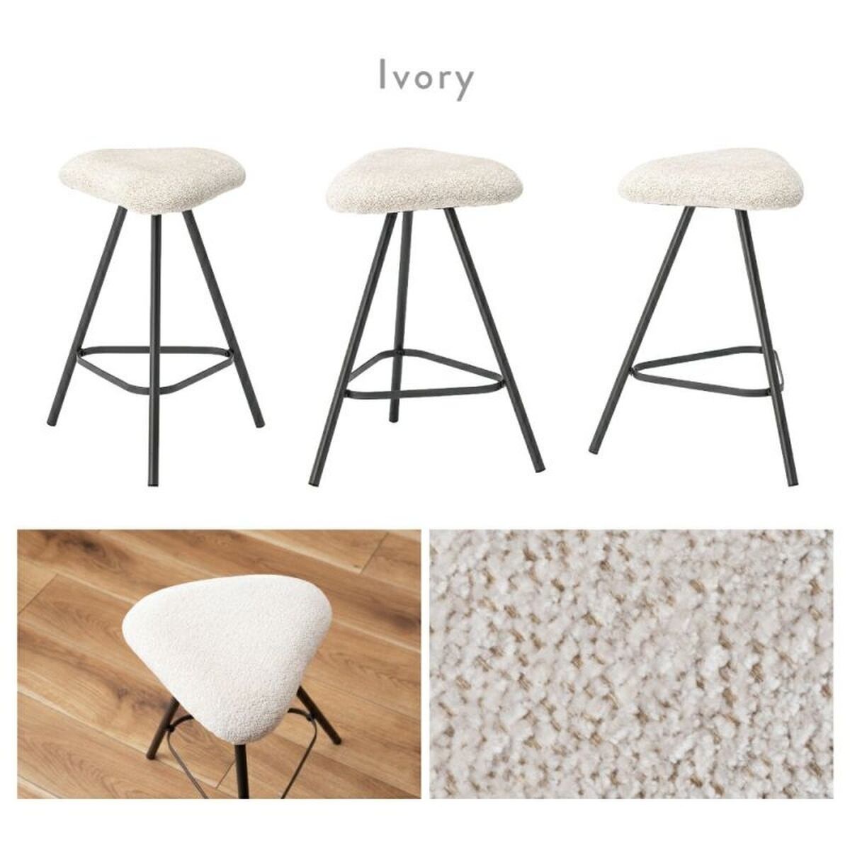 コロンとした角の丸い三角形に、落ち着いた色味のスチール脚が魅力的なスツール。