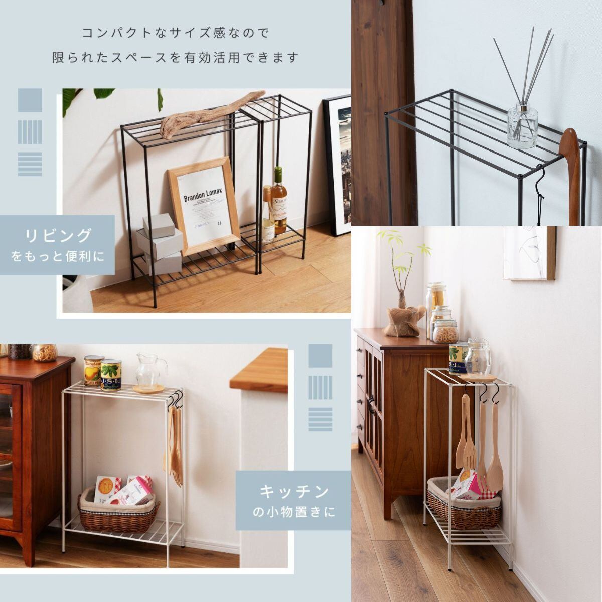 スチールラック 2段 長方形ワイドタイプ 玄関・トイレ・花台にも使える スリムでスタイリッシュなオープンラック