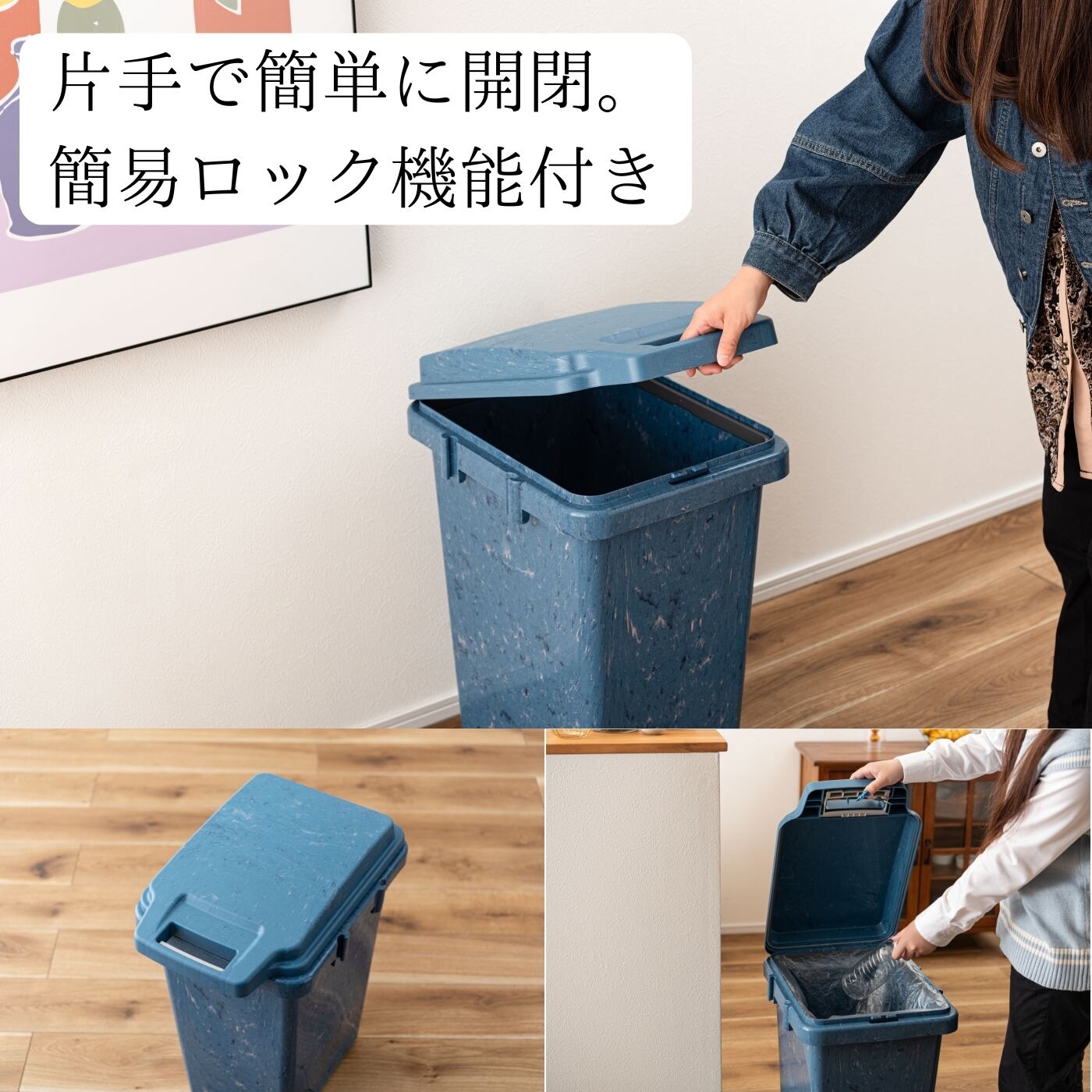 オーシャンバウンドプラスチックを回収・再利用した環境に優しい防臭ゴミ箱。