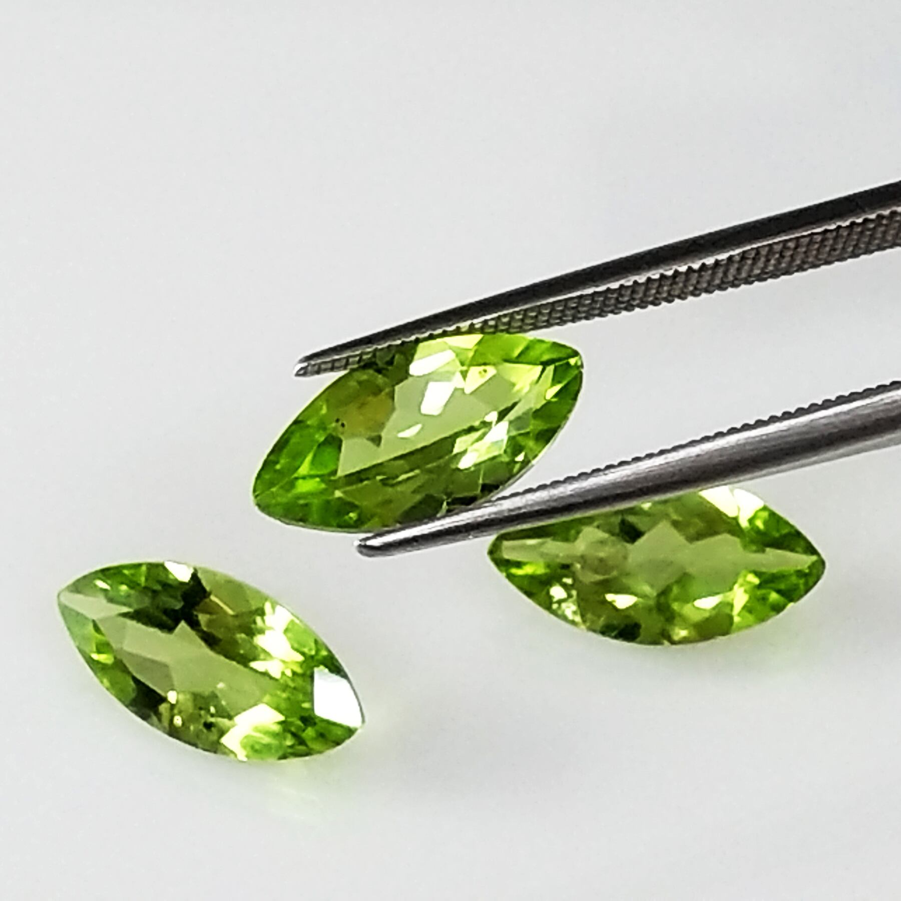 宝石質ペリドットAAA ルース マーキスファセットカット10×5mm (3粒セット)
