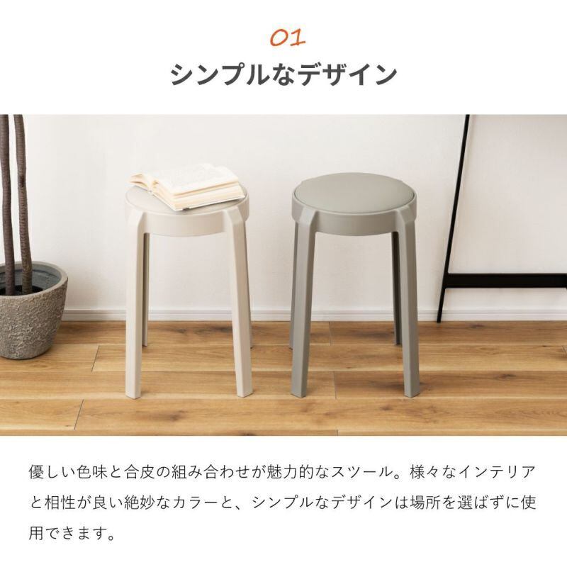 スタッキングスツール 合皮 丸椅子 高さ49cm キッチン 背もたれなし おしゃれ 来客 簡易椅子 一人掛け いす