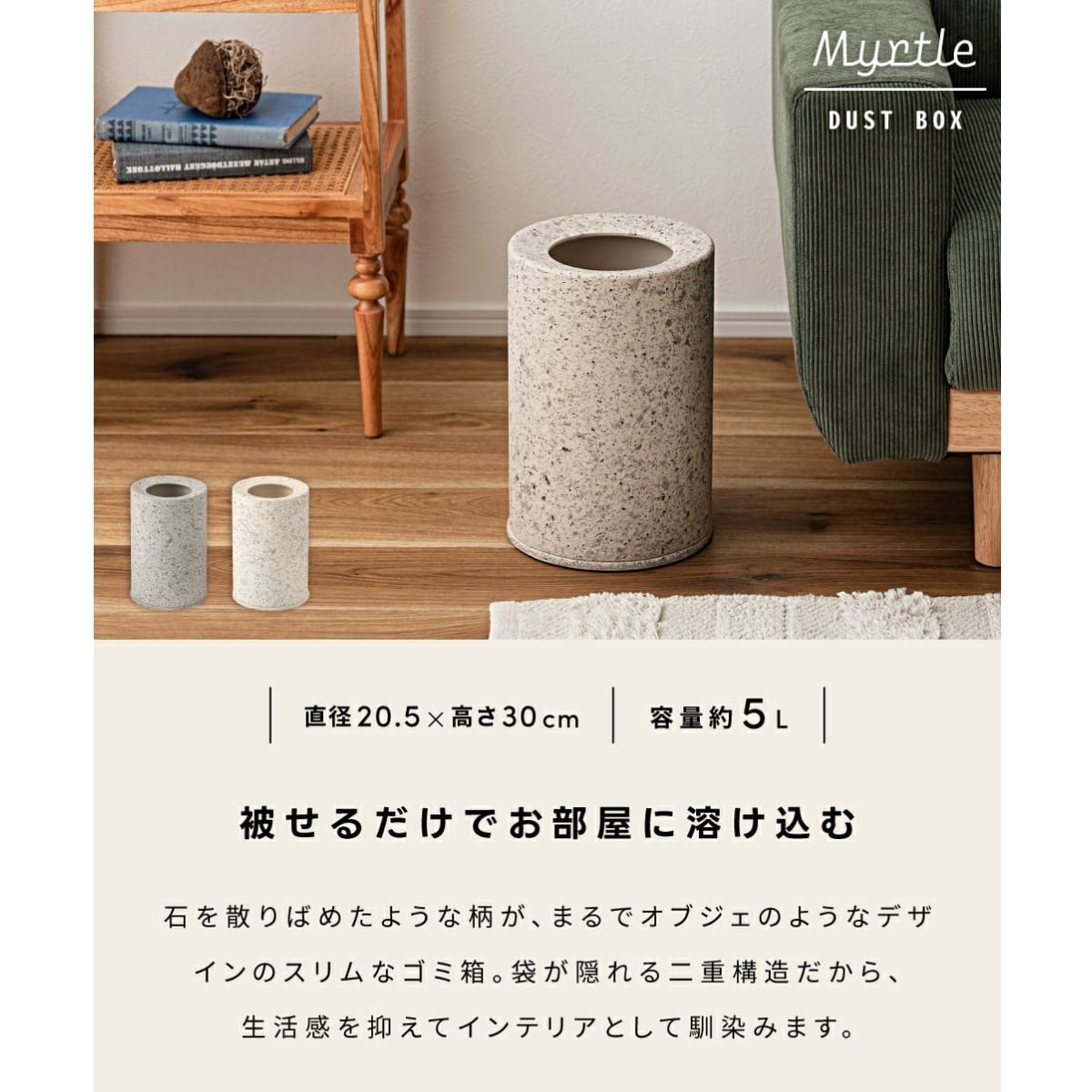 トラッシュカン ダストボックス ごみ箱 5L 人口大理石柄 二重構造 ゴミ袋が見えない 生活感を抑える 分別 石目調 テラゾー柄 一人暮らし リビング オフィス