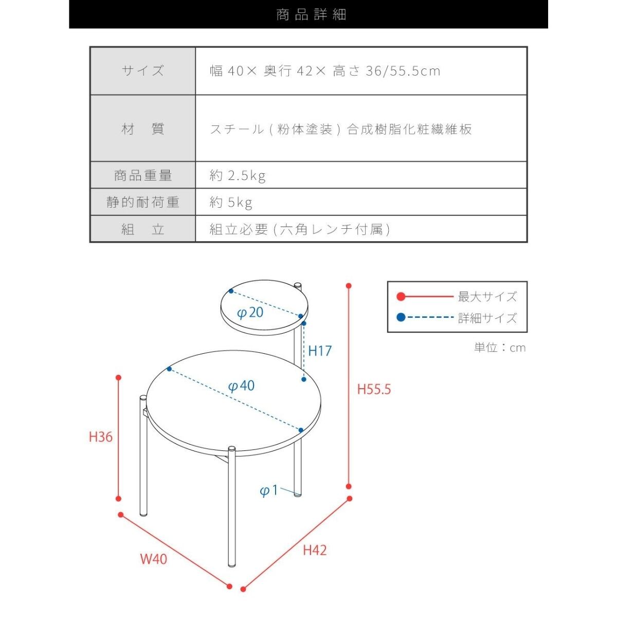 商品名:商品名:2段サイドテーブル コーヒーテーブル ソファ ベッドサイド 机 円形 リビング 寝室 玄関 石目調 木目調 シンプル プランター フラワースタンド