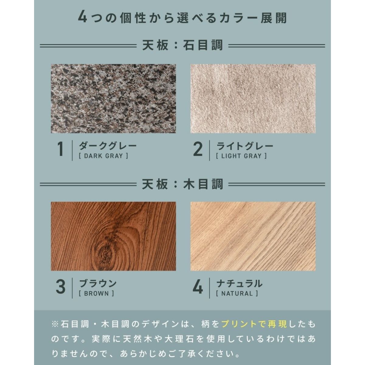 ・ライトグレー(石目調):やわらかで明るいトーン。ナチュラルや北欧スタイルに。