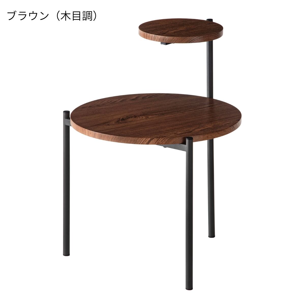 異素材の組み合わせがスタイリッシュな存在感を放つ、2段天板のサイドテーブルです。
