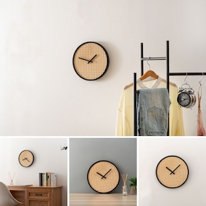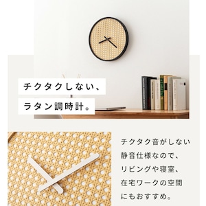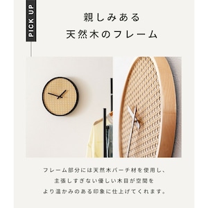 商品名:壁掛け時計 ラタン かごめ編みタイプ ウォールクロック おしゃれ 北欧 静音 壁時計 寝室 リビング オフィス シンプル
