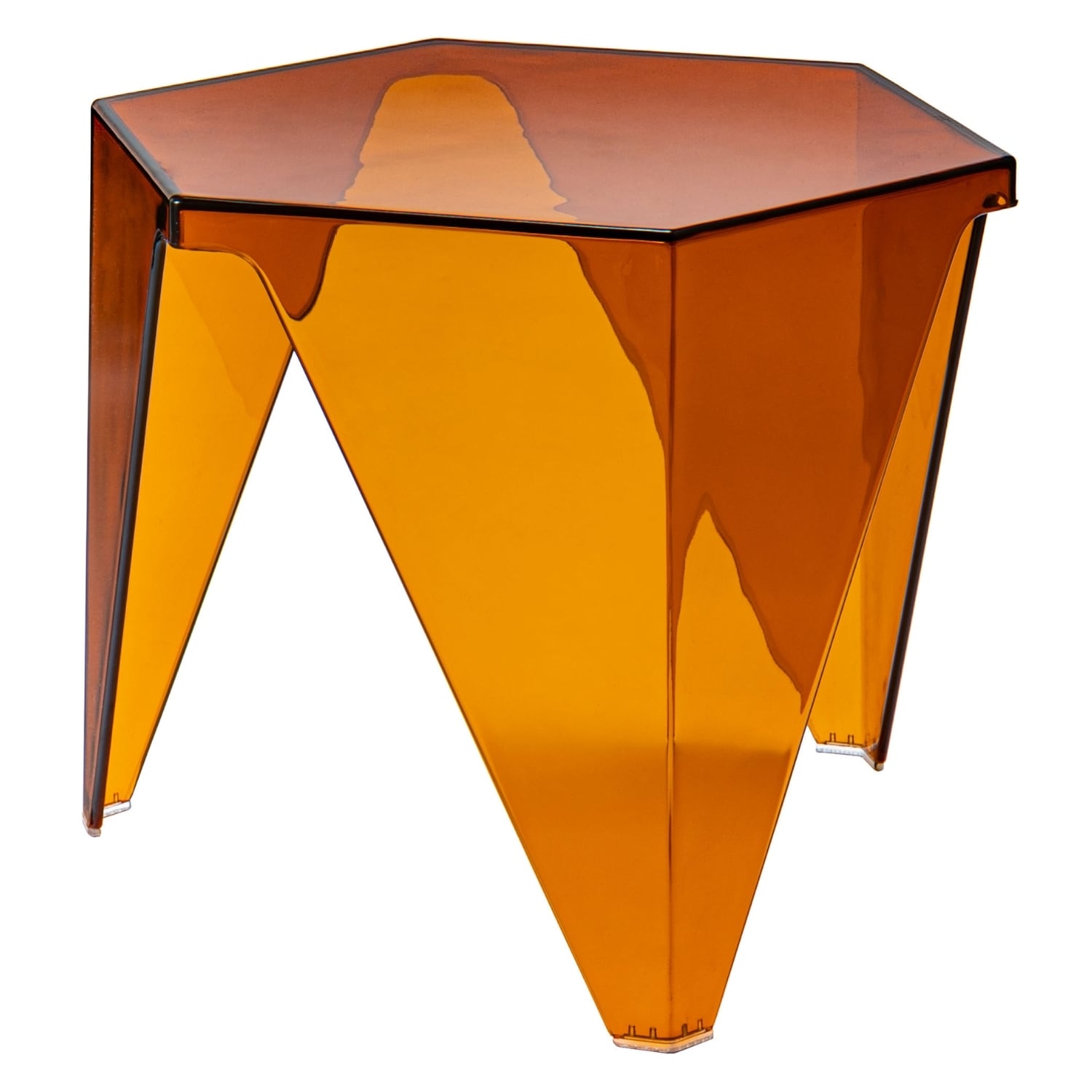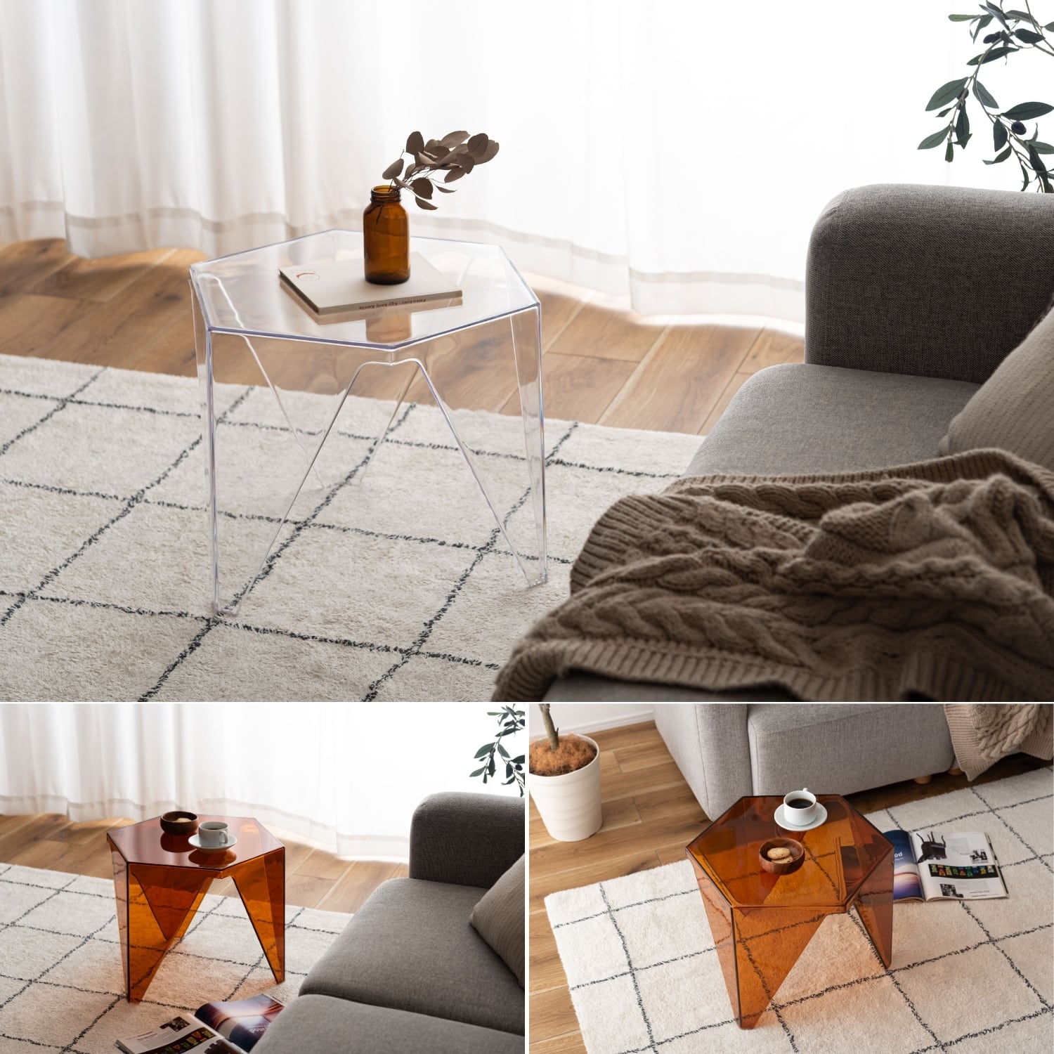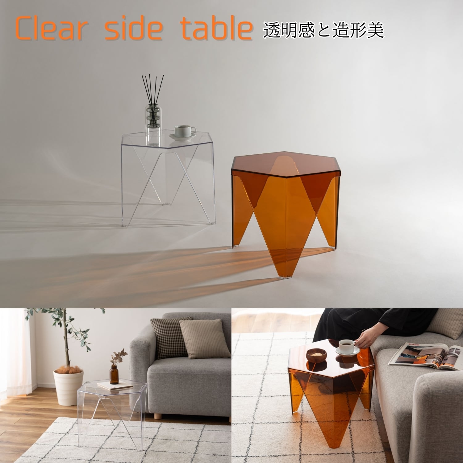 商品名:サイドテーブル 透明感と光沢が美しい ポリカーボネート製 アートな幾何学デザイン スリムなクリアテーブル