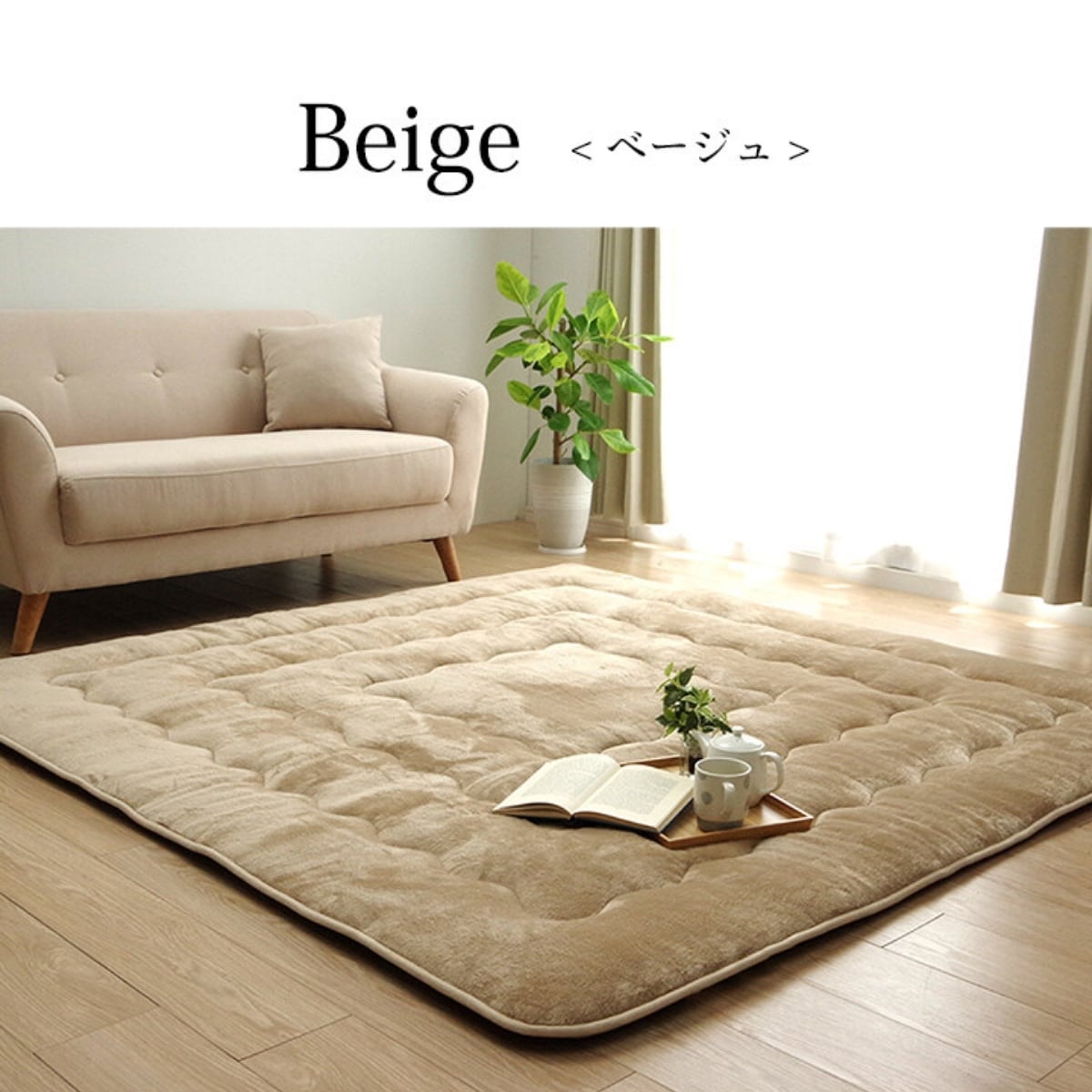 約190×260cmのゆったりサイズで、冬のリビングに敷くだけで暖かく快適に。撥水加工のフランネル表地と6層構造の中材が底冷えを防ぎ、汚れもさっと拭ける仕様。省スペースでも敷ける正方形タイプで、こたつシーンにもラグ使いにも重宝します。