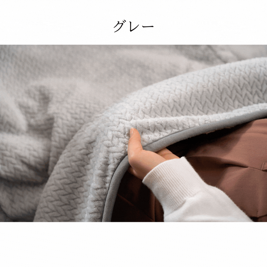 表面にニット風デザイン、裏面にボア生地を使用した「ニット風裏ボアこたつ布団」。