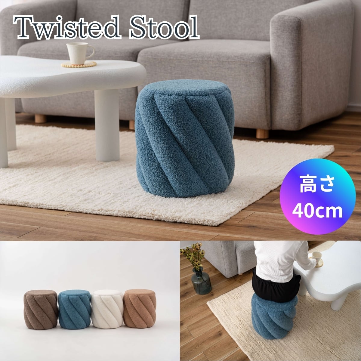シンプルながらぬくもりを感じさせる、ツイストデザインのスツール。