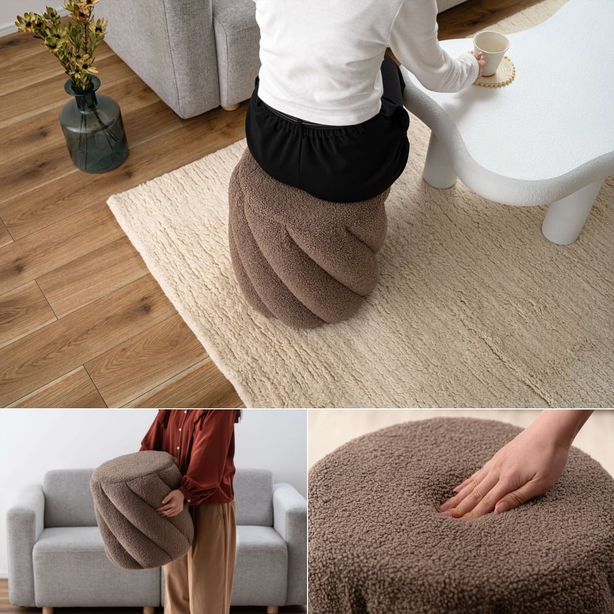 ・背もたれのないラウンド型は動線を邪魔せず、北欧・韓国インテリア・ナチュラル・モダンテイストのお部屋に自然に馴染む万能デザイン。