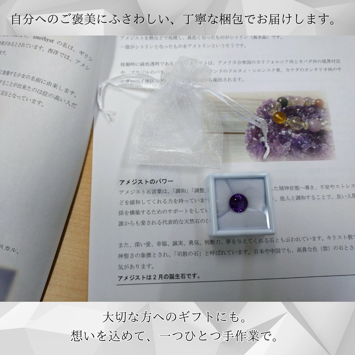 Amazon・Yahoo!で5年間、多くのお客様に選ばれてきた専門知識を活かし、この石専用の『守護石解説書』を同梱してお届けします。初めてルースを手に取る方もご安心ください。