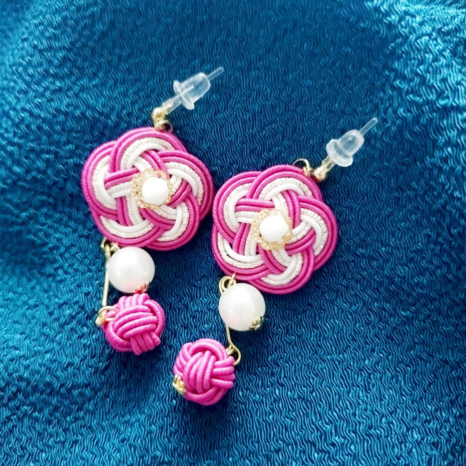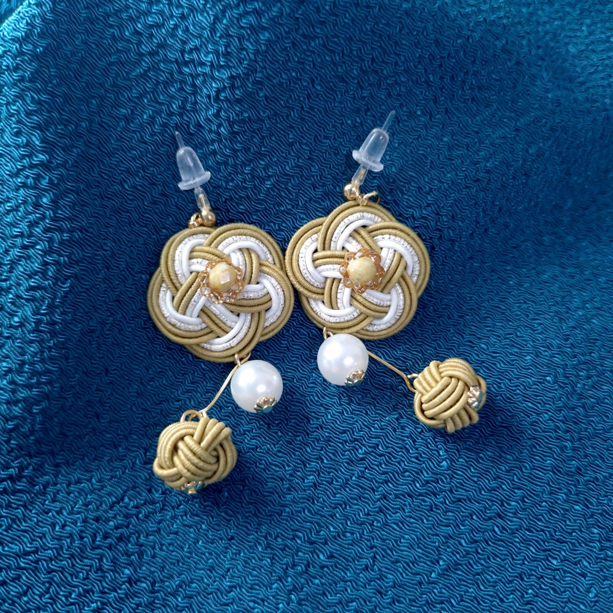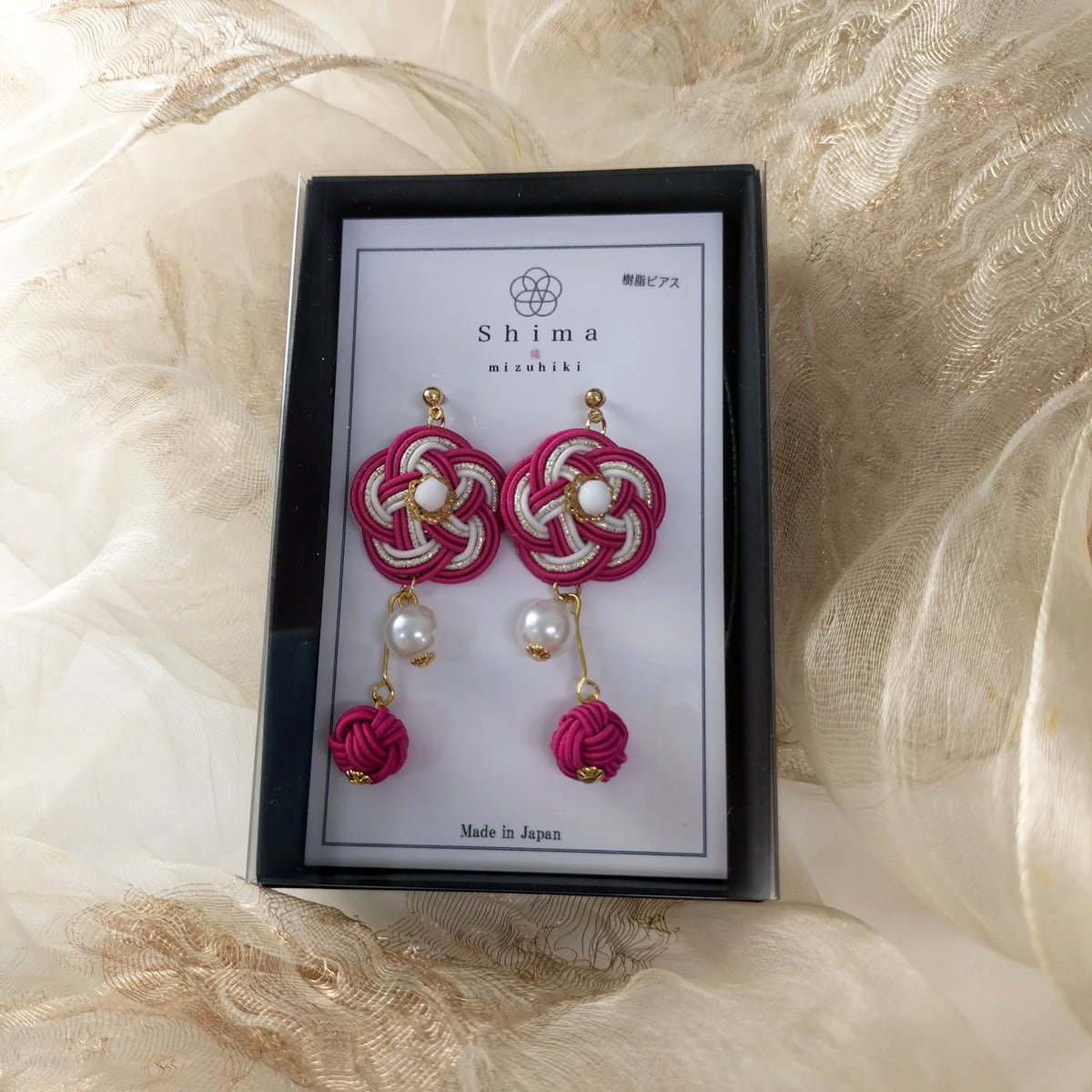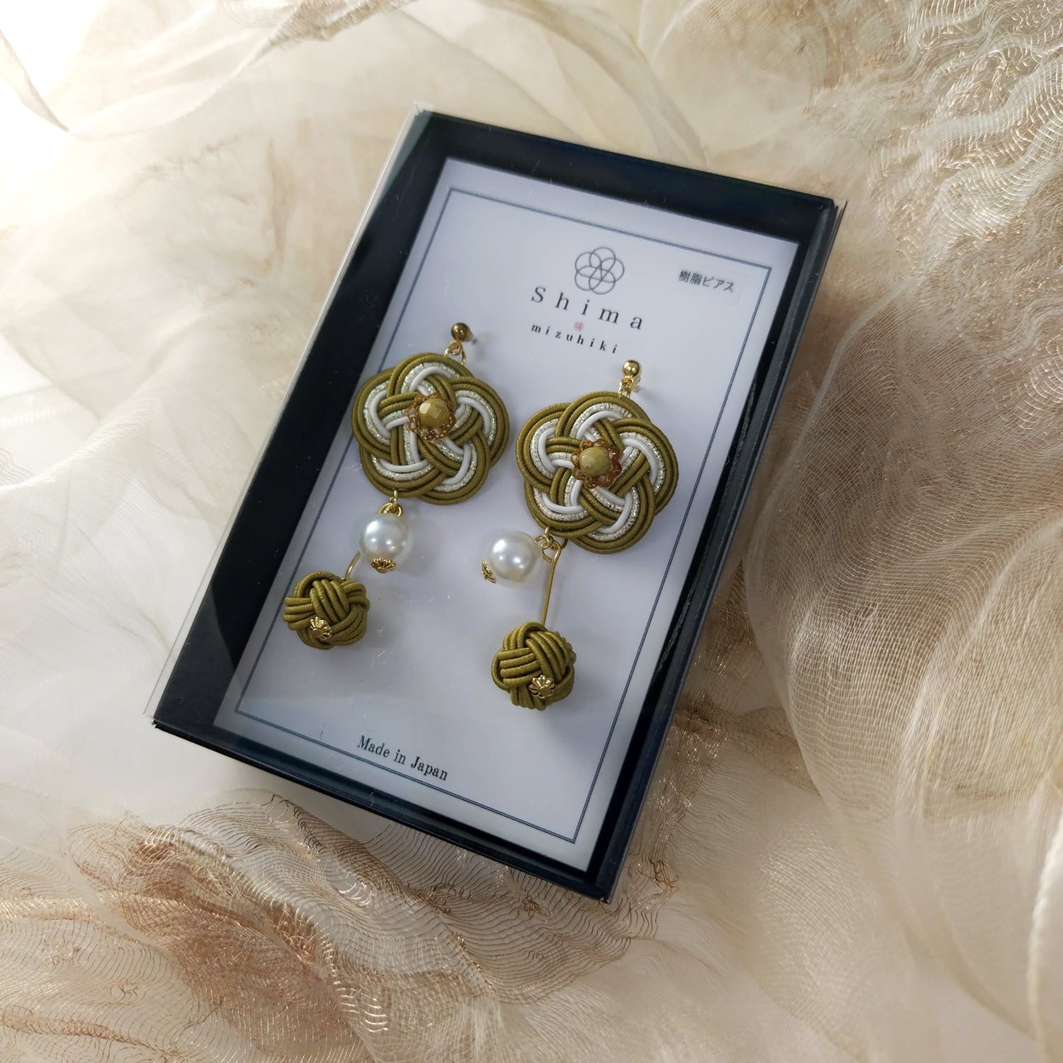梅結び×淡路玉 水引ピアス 揺れる和アクセサリー 上品・華やか|樹脂ポスト 金属アレルギー対応 軽量 レディース ギフト