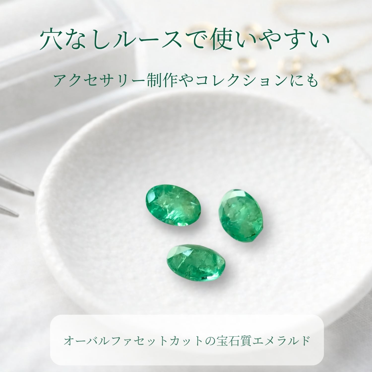 エメラルド ルース 宝石質 AA++ 約6×4mm 約0.44ct|5月誕生石 ブラジル産 オーバルファセット ピアス リング ペンダント ハンドメイド 裸石 守護石