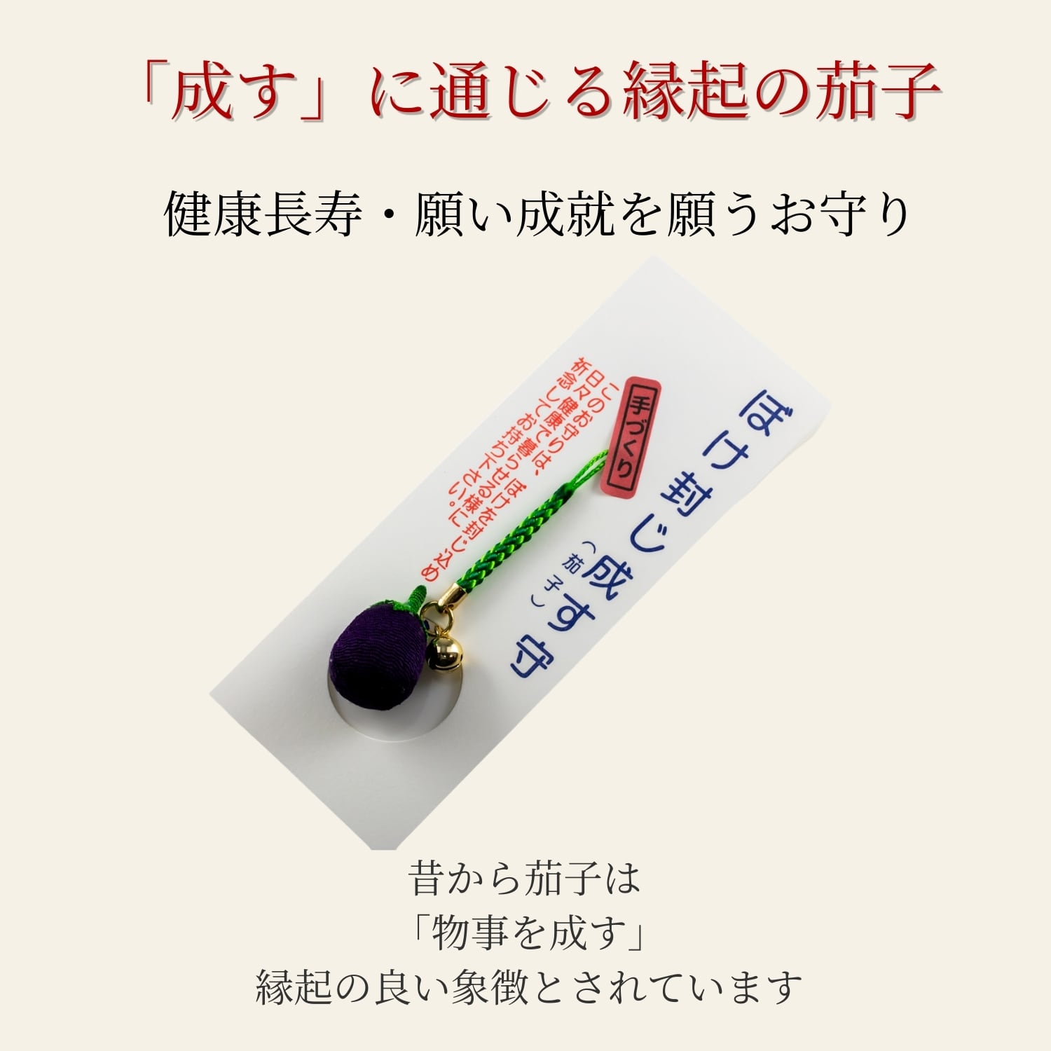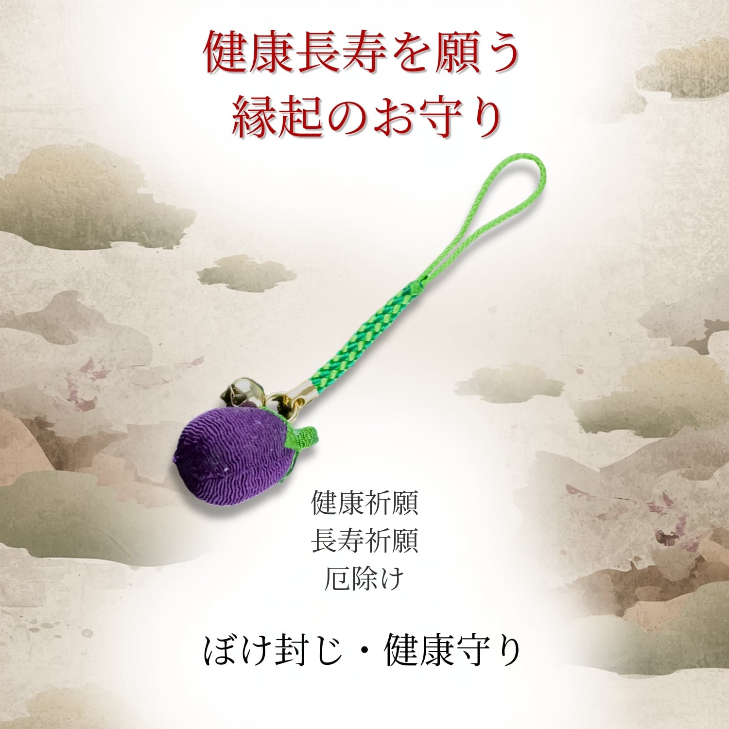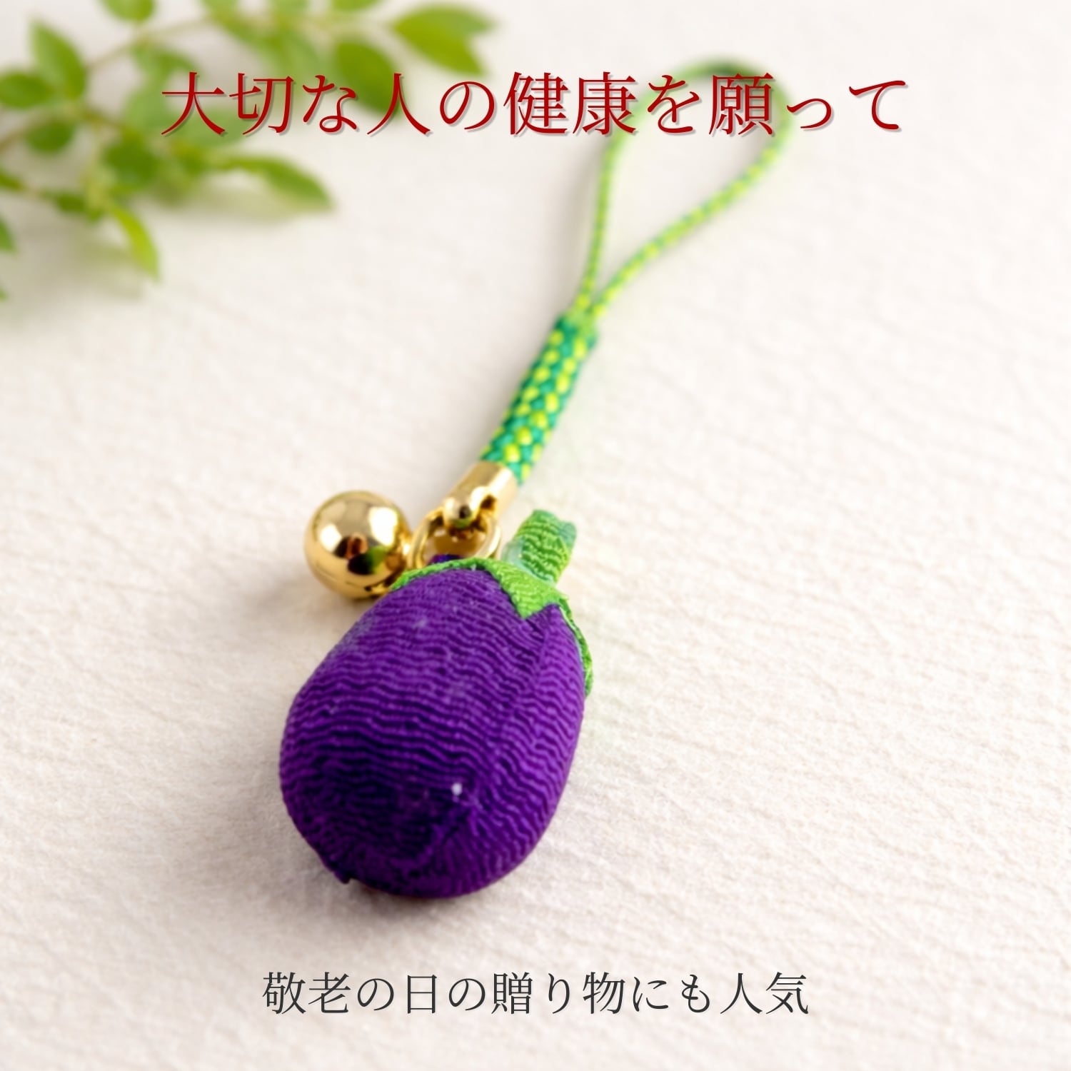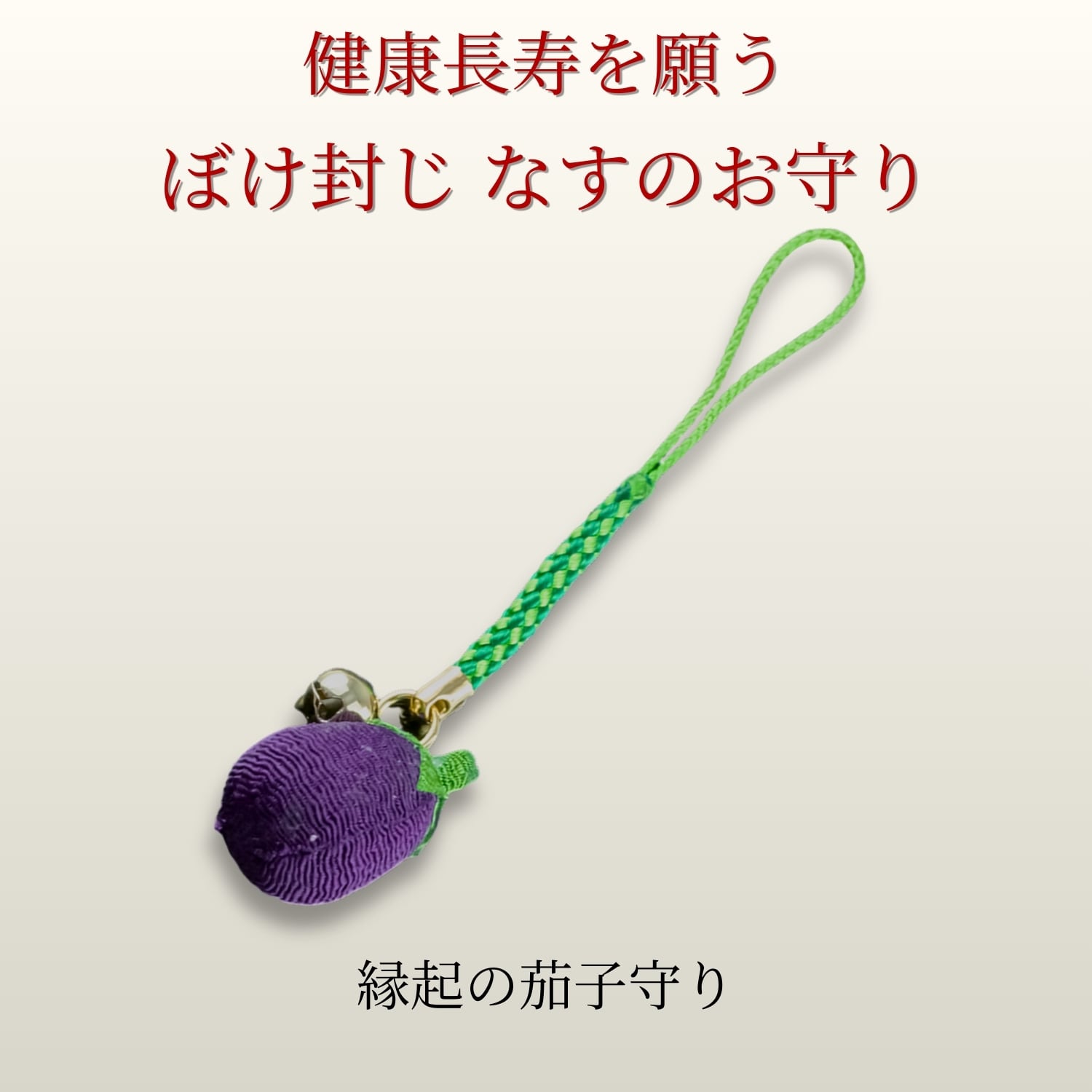ぼけ封じ成す 健康お守り 茄子モチーフ根付|無病息災・長寿祈願・健康成就|ちりめん手作り縁起物 敬老の日ギフト