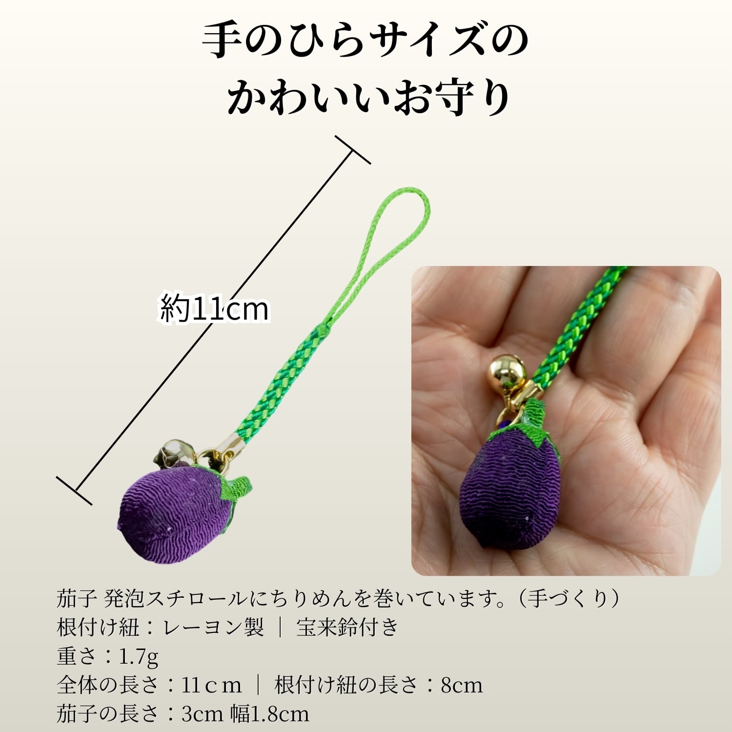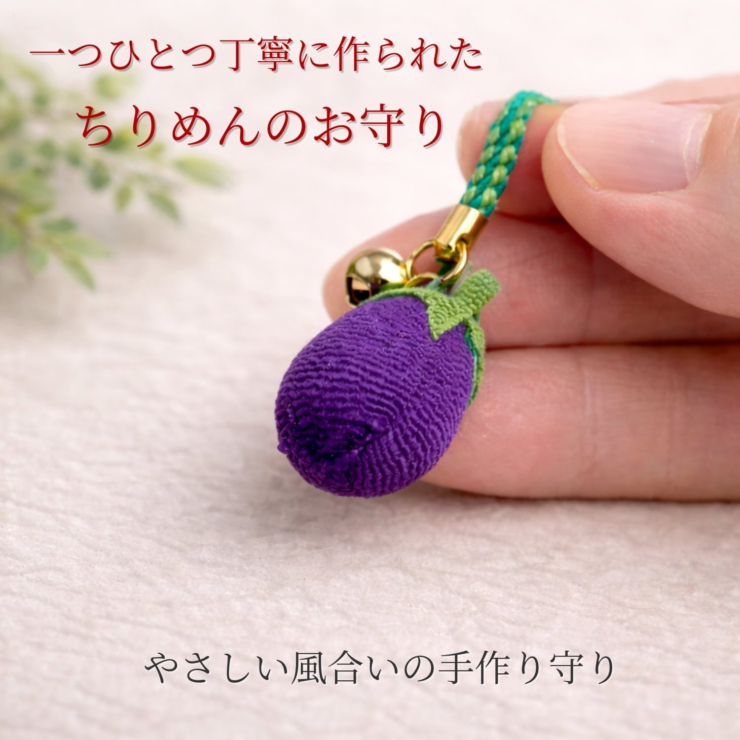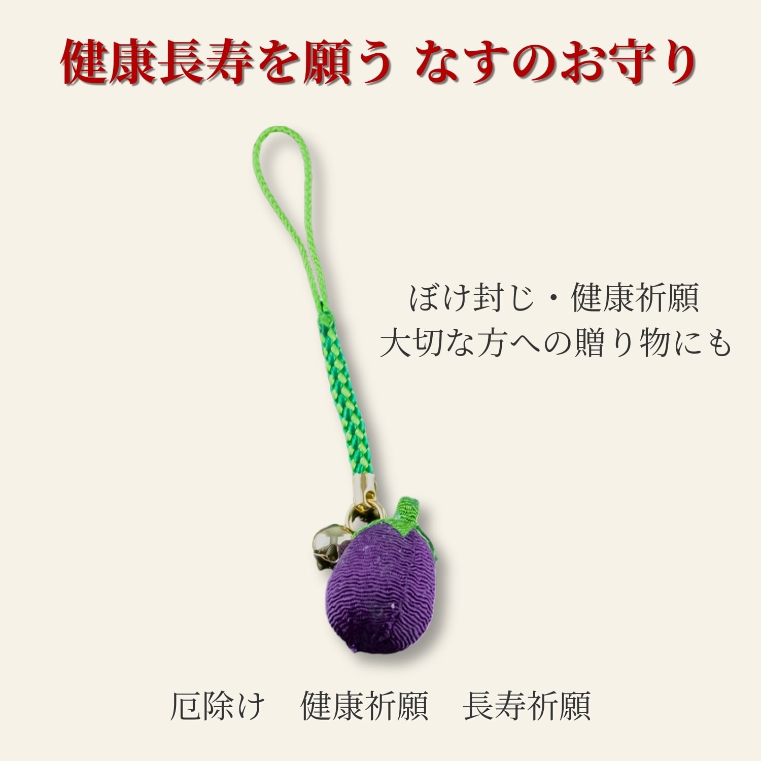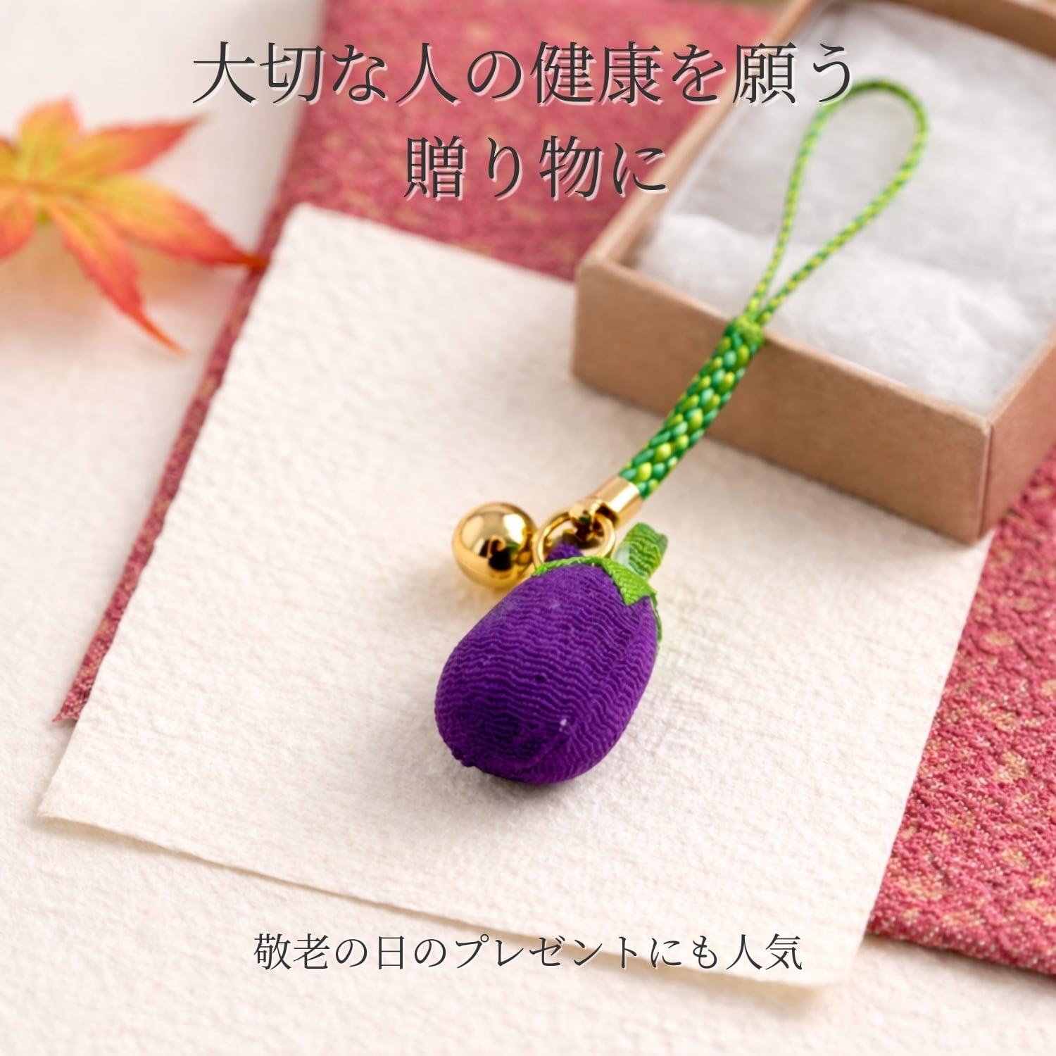 ぼけ封じ成す 健康お守り 茄子モチーフ根付|無病息災・長寿祈願・健康成就|ちりめん手作り縁起物 敬老の日ギフト