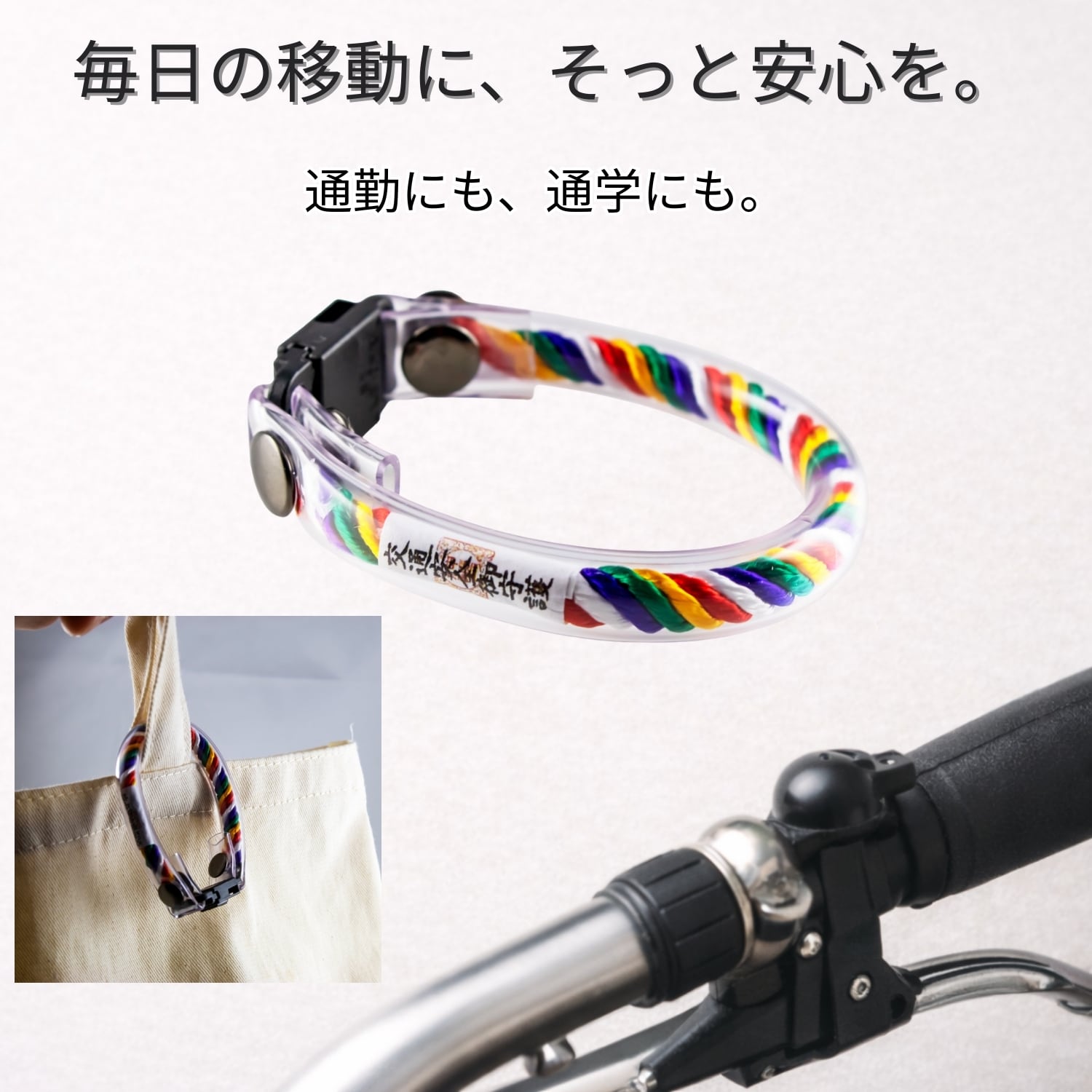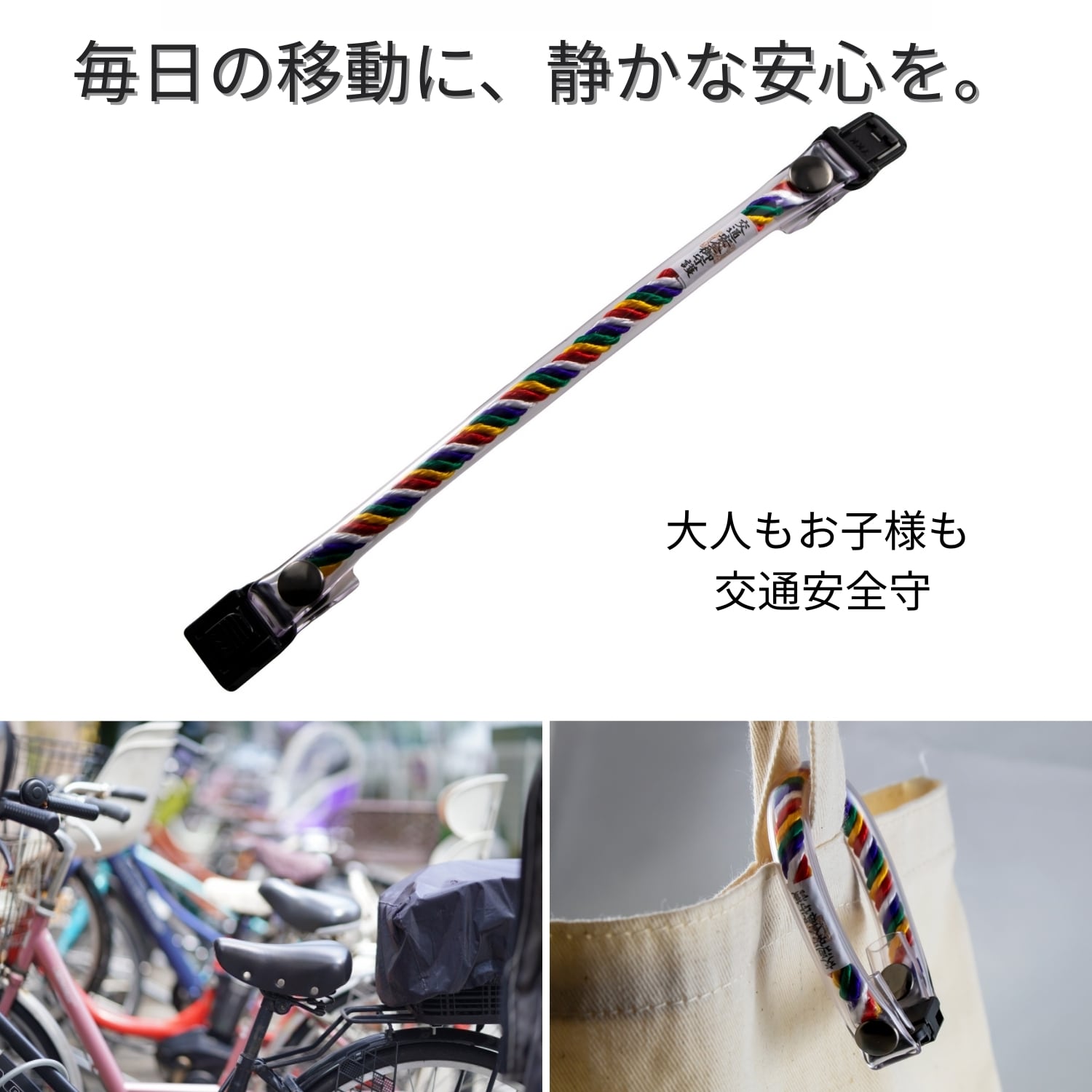 毎日の通勤・通学やお出かけに寄り添う、ワイヤーロックタイプの交通安全守です。