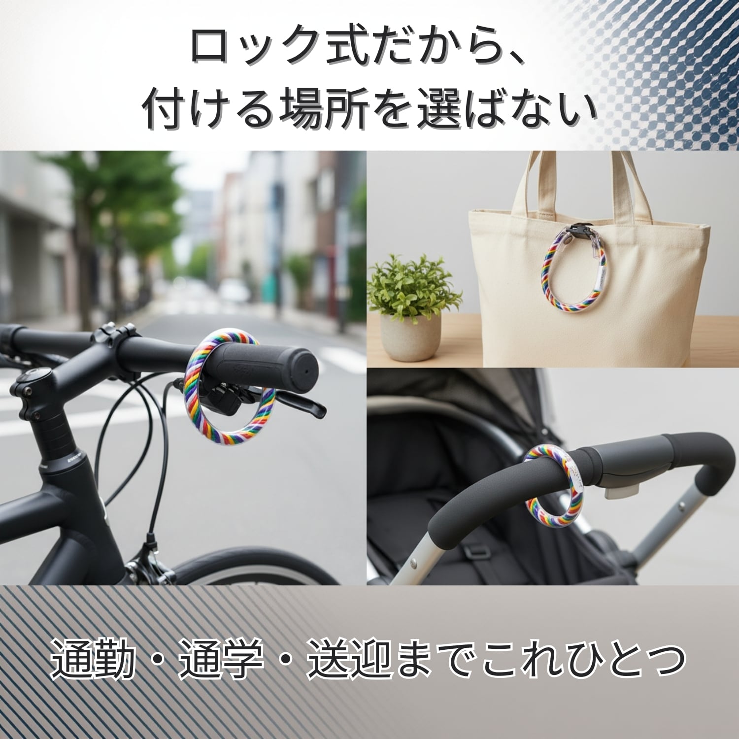 バッグや自転車にしっかり固定できる実用性と、
