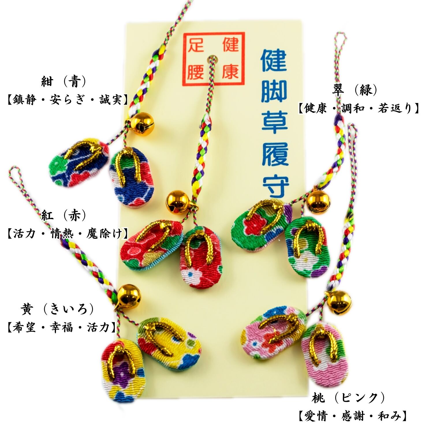 健康お守り 健脚草履御守|足腰守り・長寿祈願に|ちりめん手作り鈴付き根付|和風かわいい開運御守