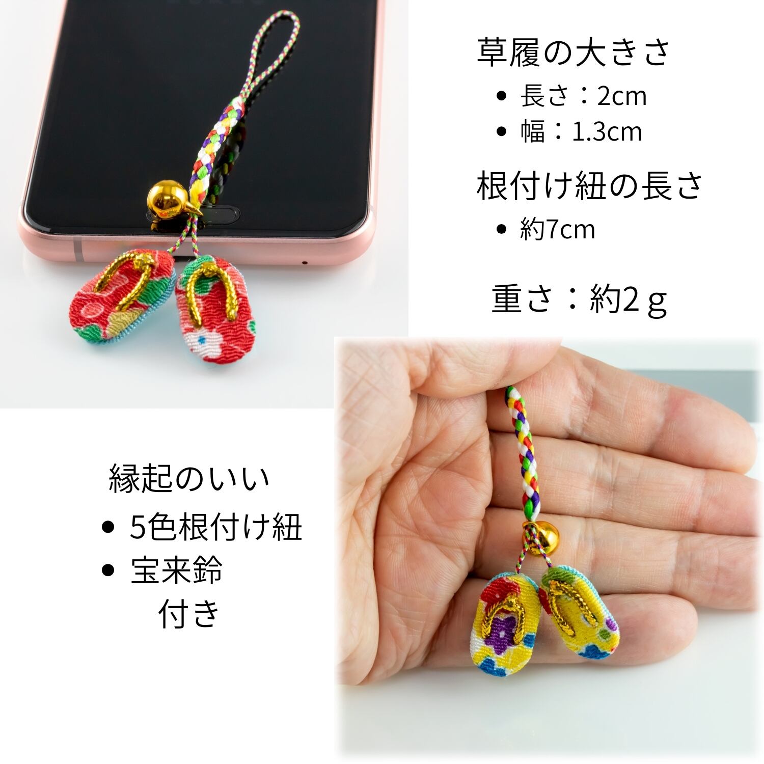 草履の長さ:2cm 幅:1.3cm 厚さ:0.7cm