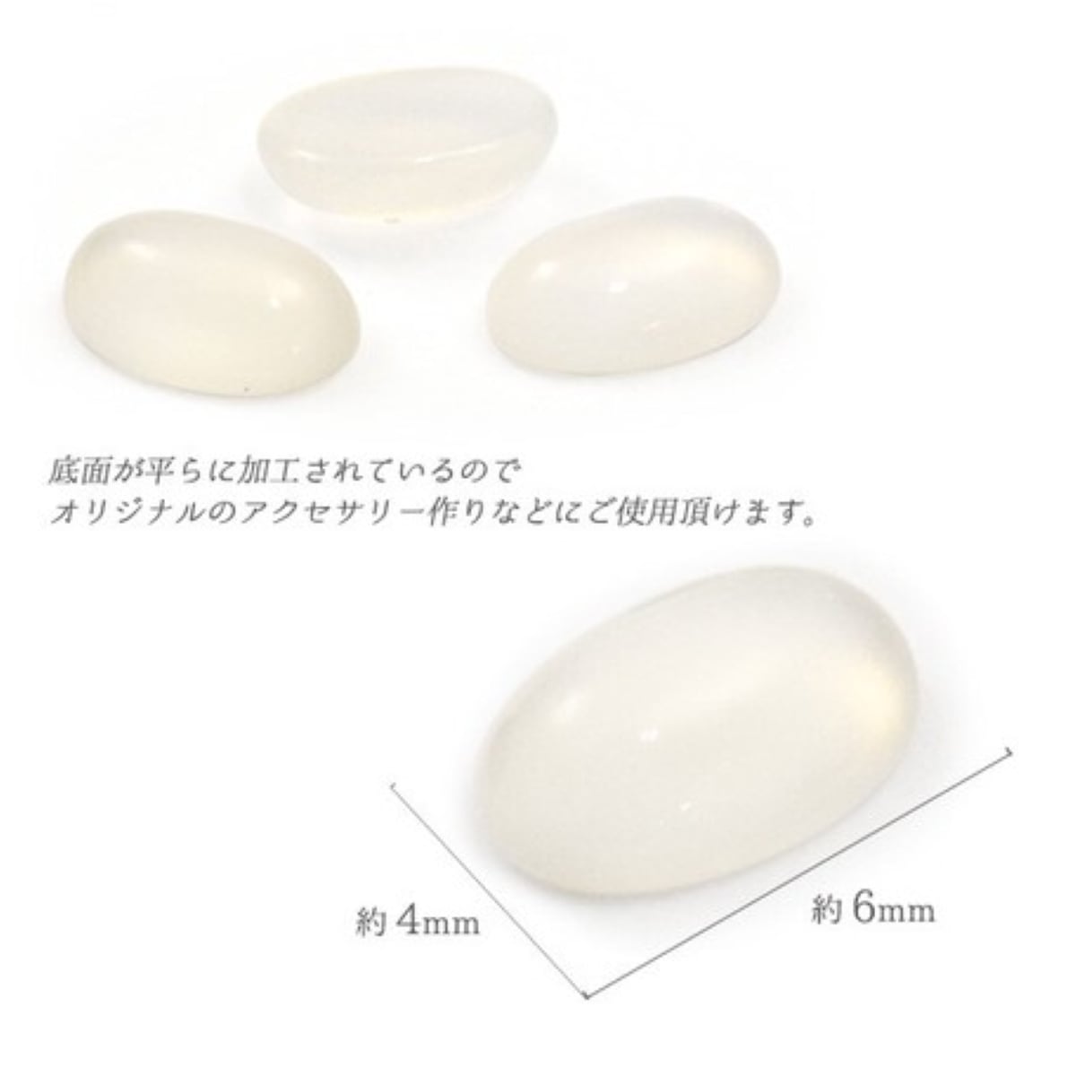 やわらかな光を放つホワイトムーンストーン。6×4mmの天然ルース10個セットで、ピアスやペンダントなど繊細なアクセサリー作りに最適です。6月の誕生石として「癒し・女性性・直感」を象徴し、パワーストーンとしても人気。お守りや記念日の贈り物にもおすすめ。送料無料でお届けします。