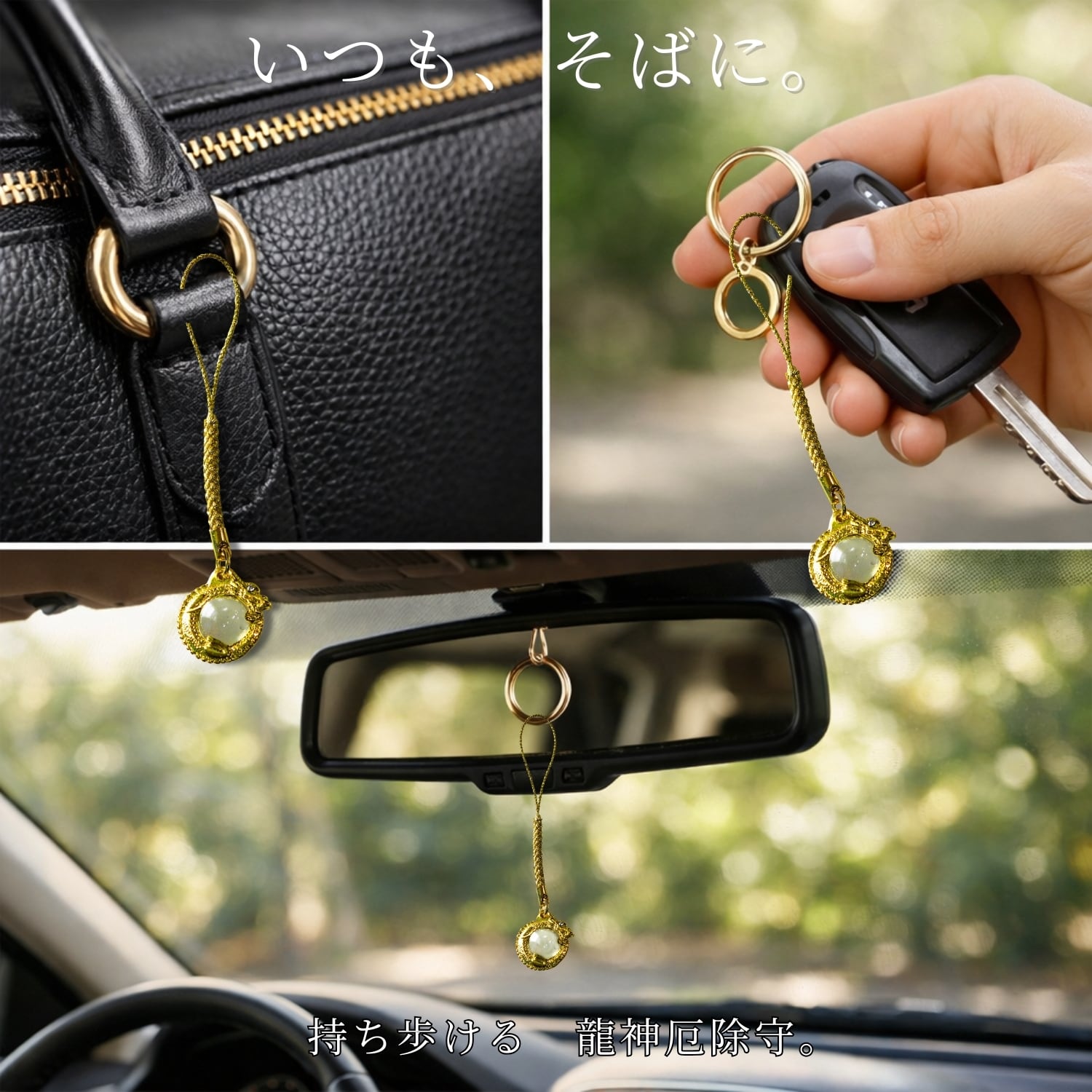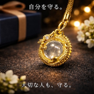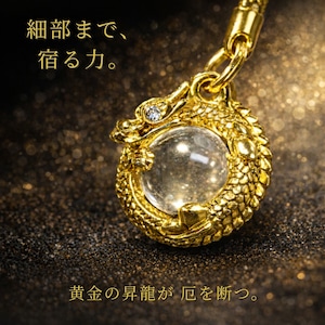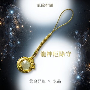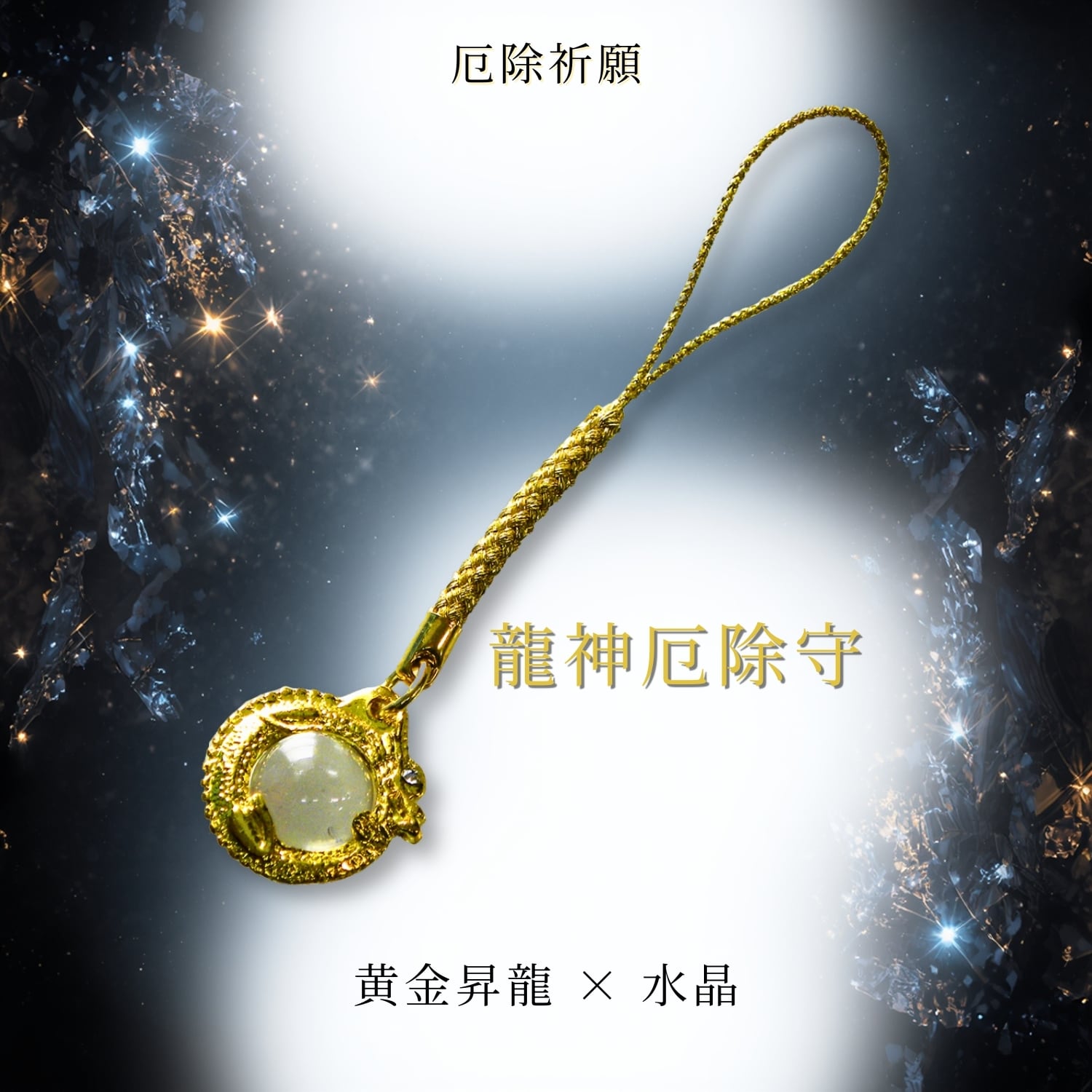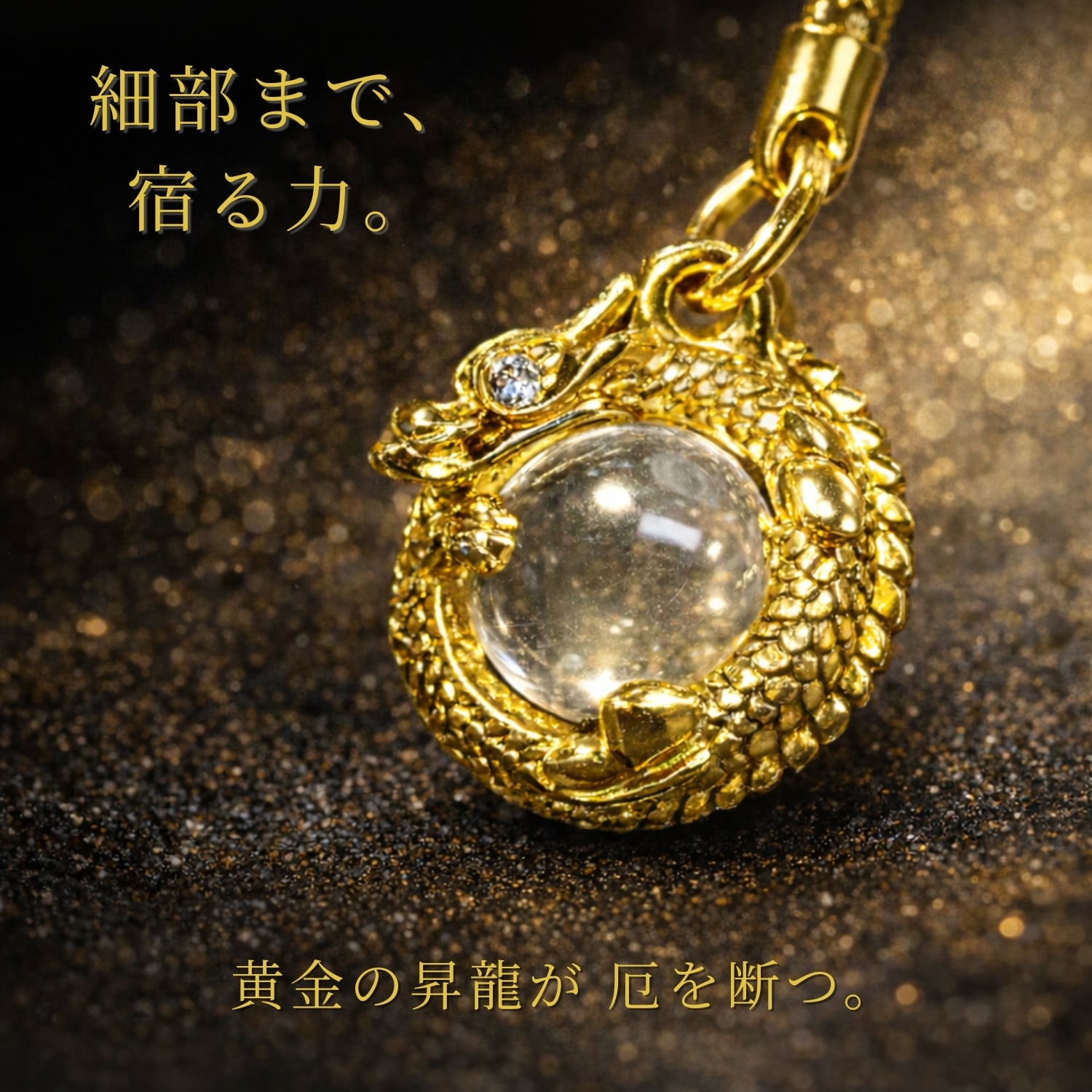 厄除金運 龍神守 黄金昇龍お守り|水晶玉付き 魔除け・開運・金運上昇祈願|根付ストラップ 縁起物 ギフト