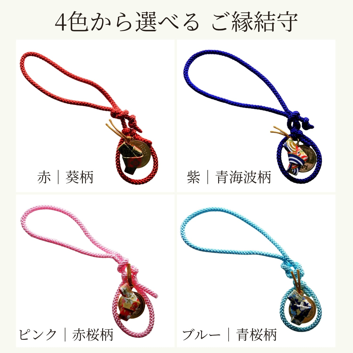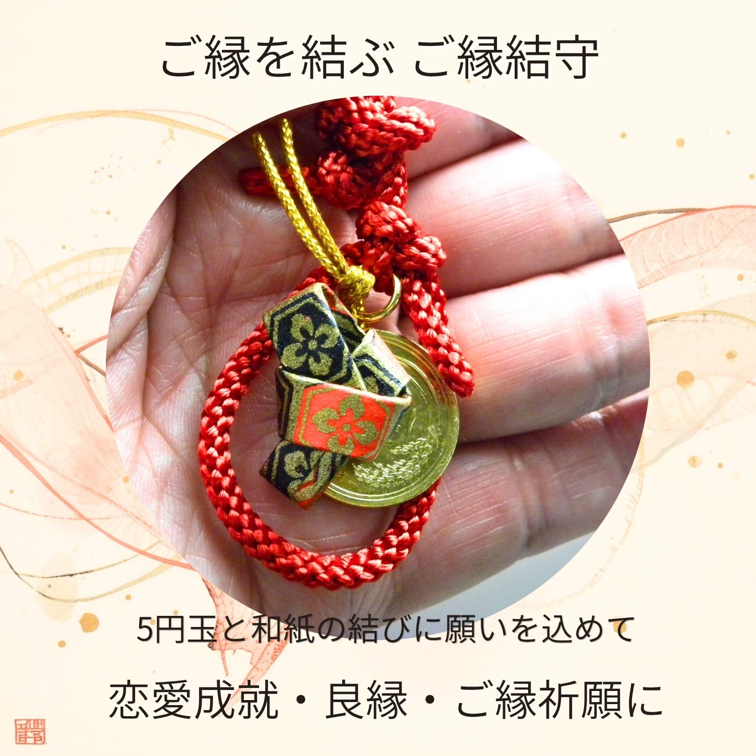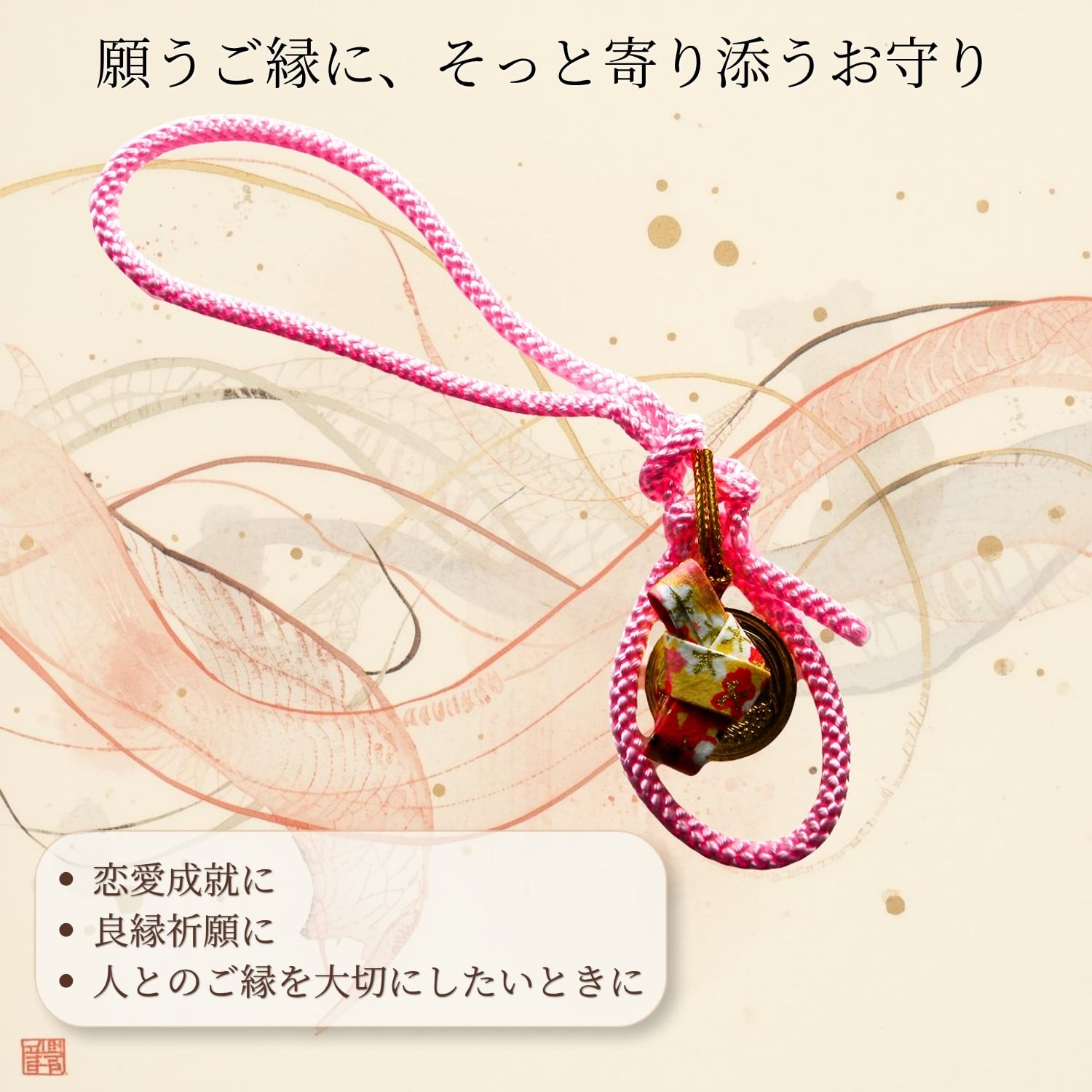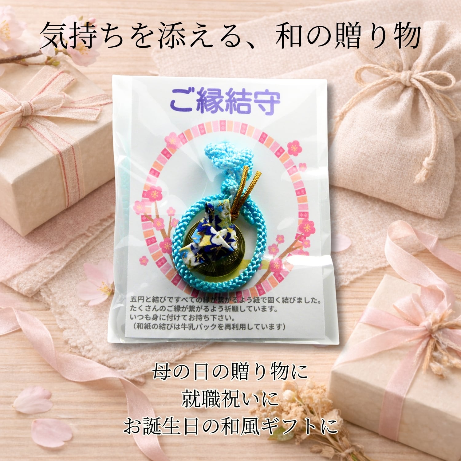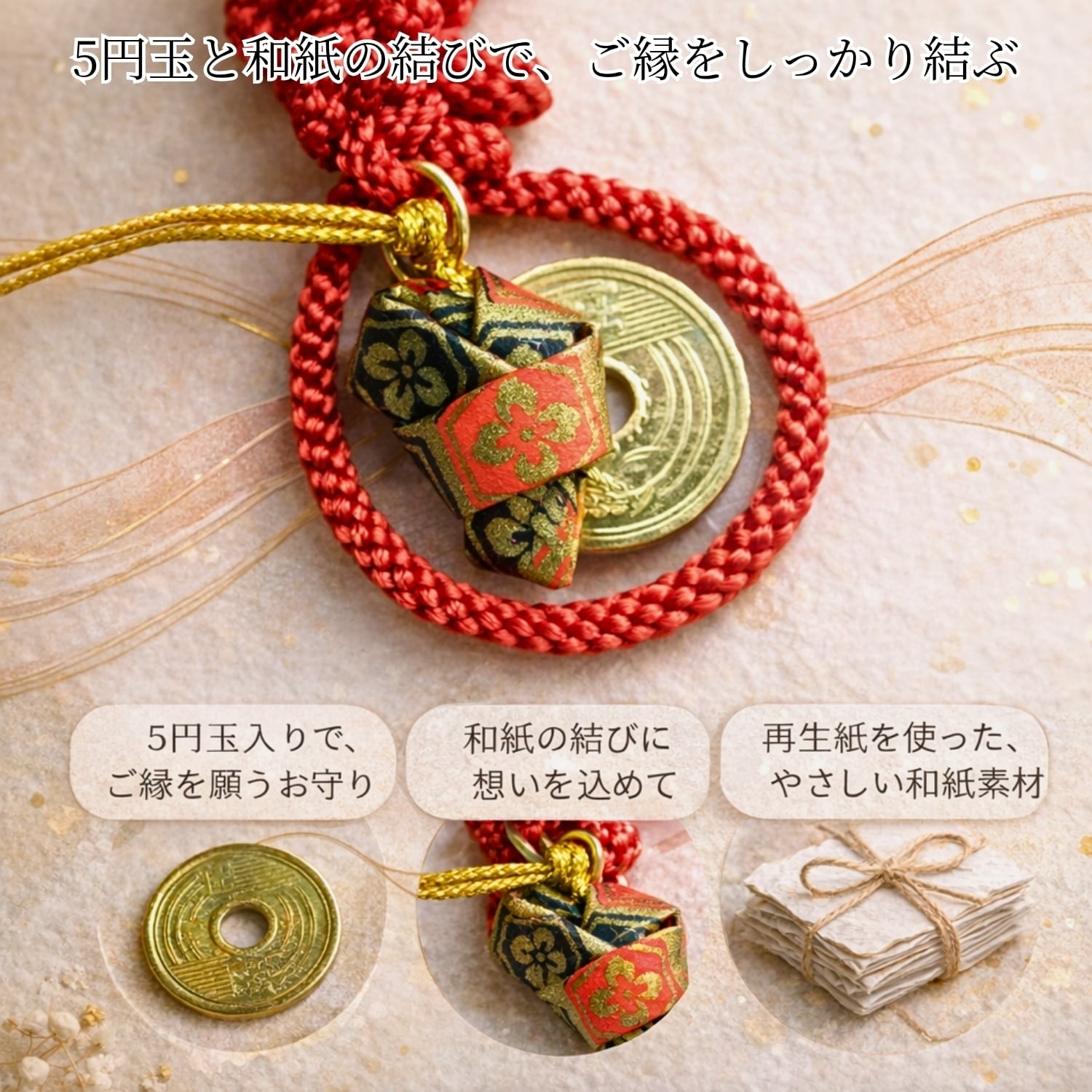 縁結び お守り 5円玉付き|恋愛成就 結婚運 良縁祈願|エコ 和紙 根付 ストラップ 4色 バレンタイン 誕生日 プレゼント ギフト 開運