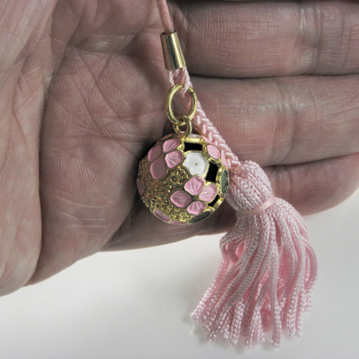サイズ(約):鈴直径 1.8cm(接続用金具部分含まず) ストラップ(房紐)含めた長さ 12cm