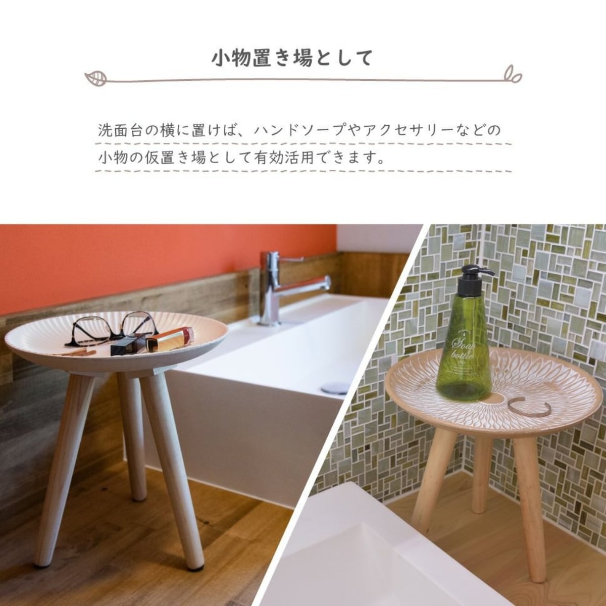トレーテーブル Sサイズ サイドテーブル 天然木 ミニテーブル 小物入れ フラワースタンド モロッコ風 おしゃれ ナチュラル シンプル ソファサイド ベッドサイド