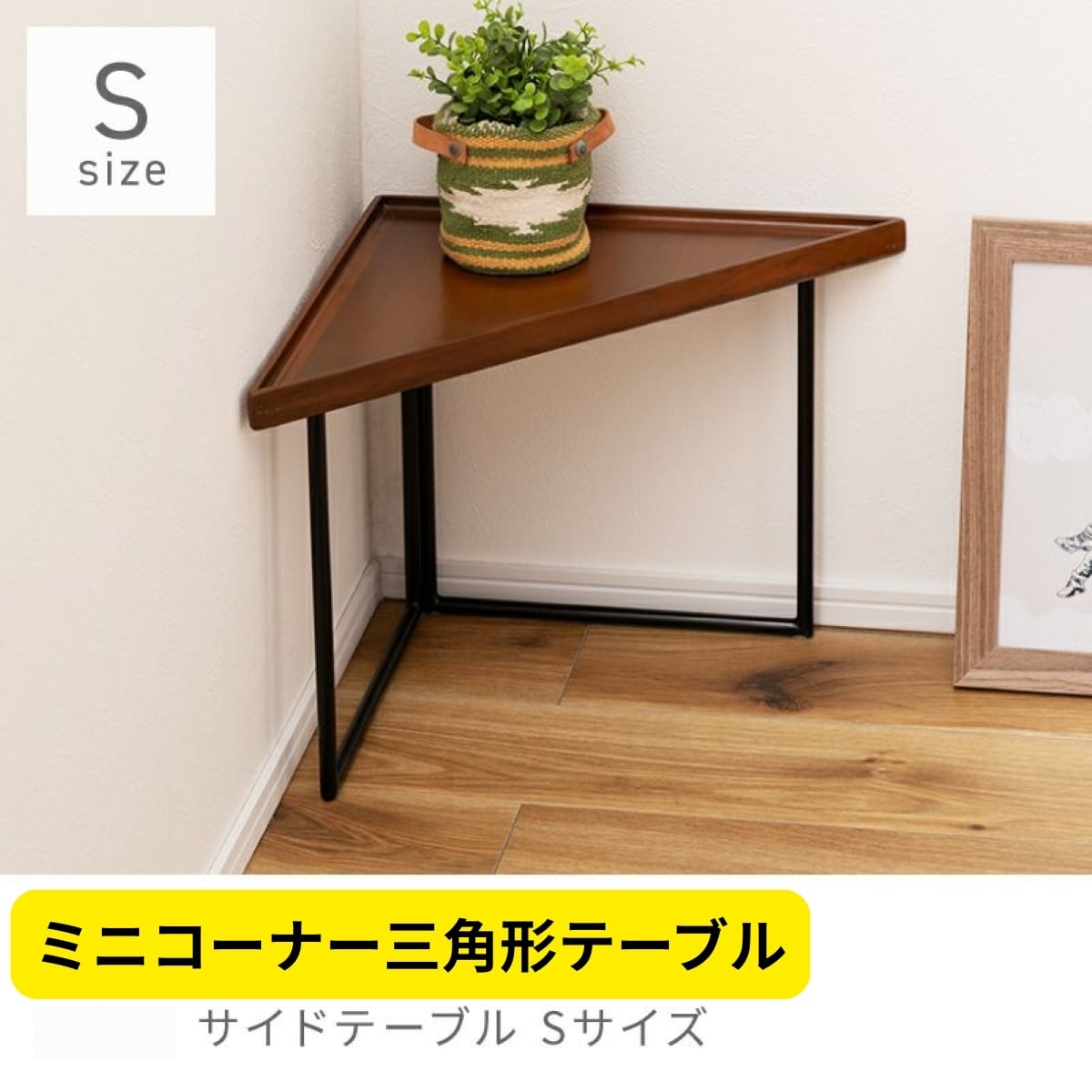 ミニコーナーテーブルS 天然木チーク スチール 軽量2kg 高耐荷重20kg 隙間活用 デッドスペース 角置き ナチュラル