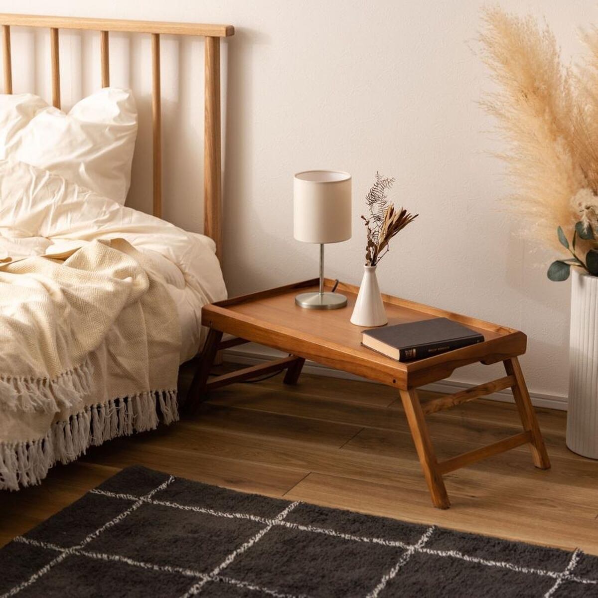 B‑Kraftシリーズ折りたたみトレーテーブル。トレー型天板+脚折りたたみ式で、省スペース収納と軽量持ち運びを実現。ソファ横やベッドサイドで飲み物・リモコン置きや読書テーブルとして活用可能。完成品で工具不要、脚裏フェルト付き。ナチュラルな色調とシンプル設計でインテリアにも馴染みやすく、日常や来客時の簡易机として重宝します。