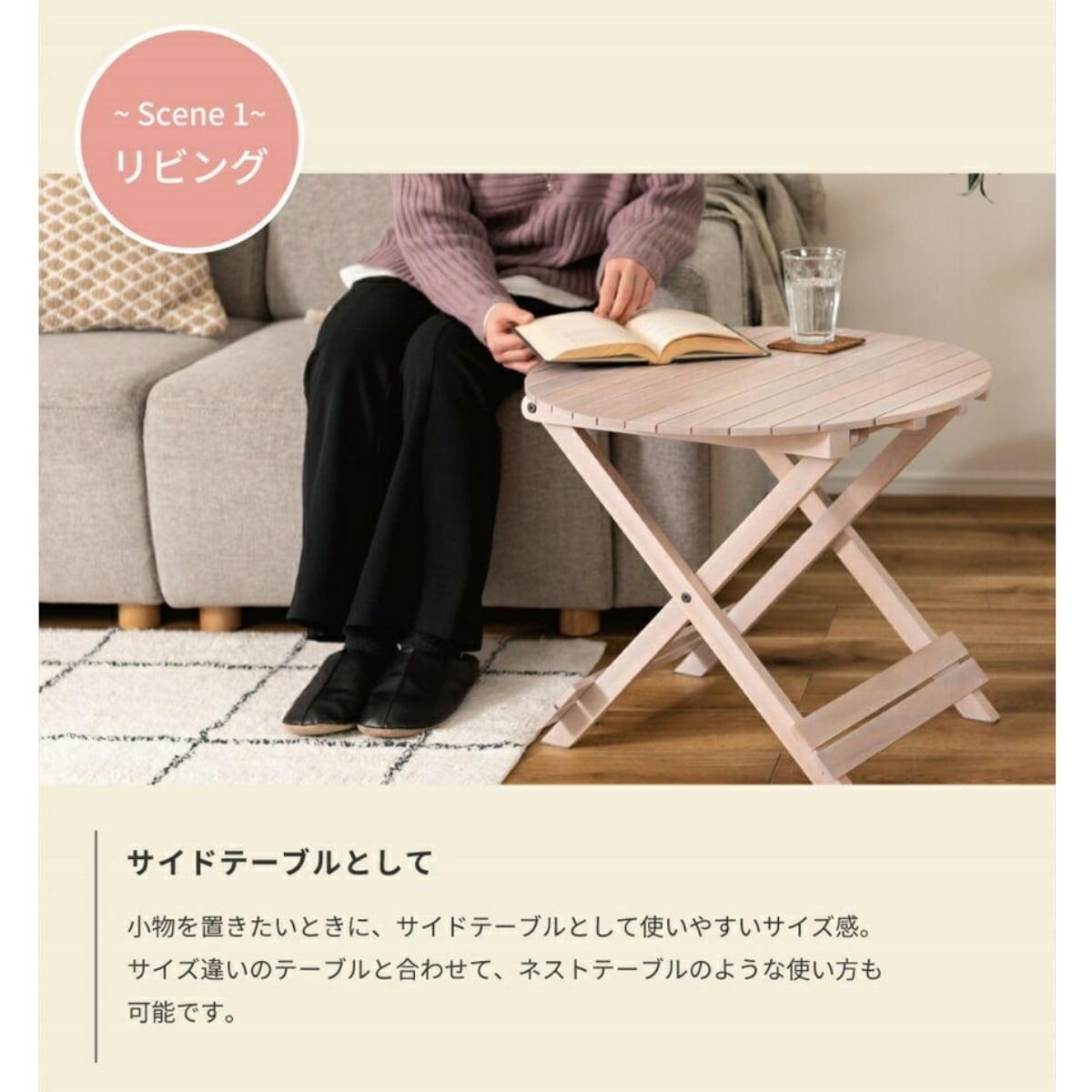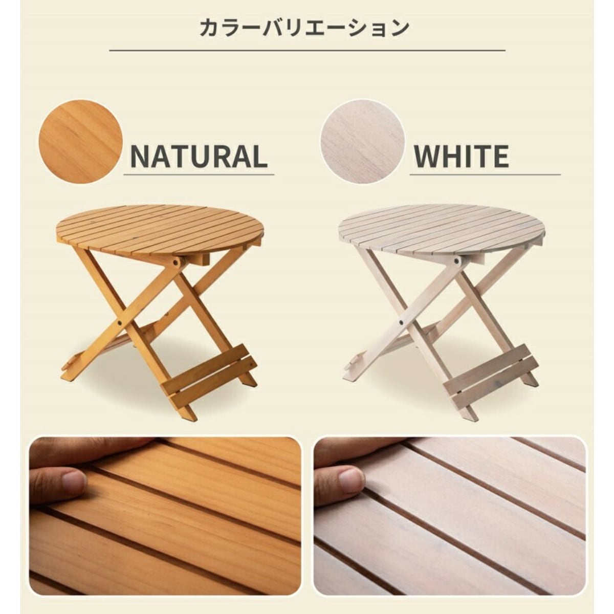 折りたたみフォールディングテーブルL φ60cm ナチュラル/ホワイト 折畳式 簡易テーブル 軽量 持ち運び 良収納