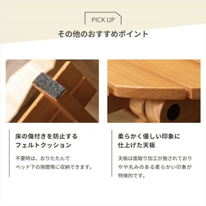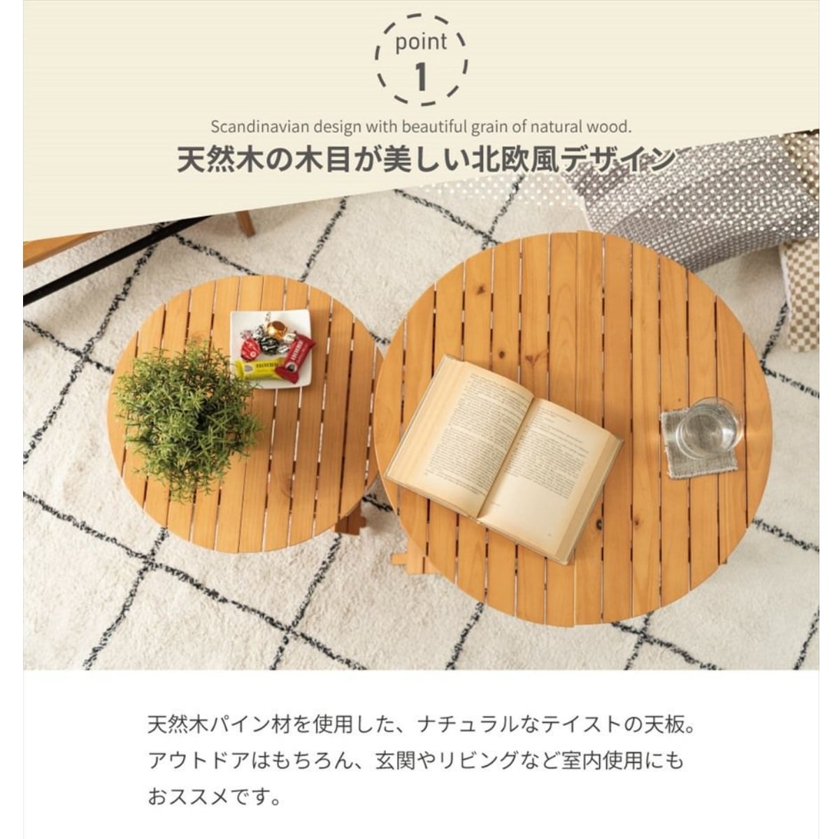 φ60cm 幅広サイズの折りたたみフォールディングテーブルL。天然木パイン材にラッカー塗装を施し、ナチュラルとホワイトの2色展開。折りたたみ時の厚さ約6cmと薄型設計で、ベッド下やクローゼットにも収納可能。脚裏フェルト付きで床面を保護。重さ約4kg、耐荷重約10kgとしっかり使える丈夫設計。ネスト仕様でSサイズと組合せても◎。おしゃれな簡易テーブルが欲しい方におすすめです。