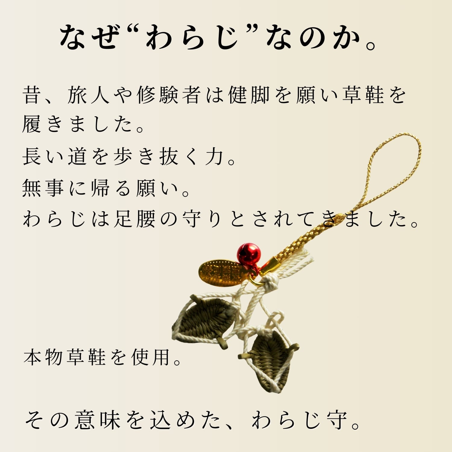 健脚わらじ守 鈴付き 根付|健康・足腰守り 草鞋型お守り|開運・長寿祈願・旅行安全に|和風縁起物ストラップ