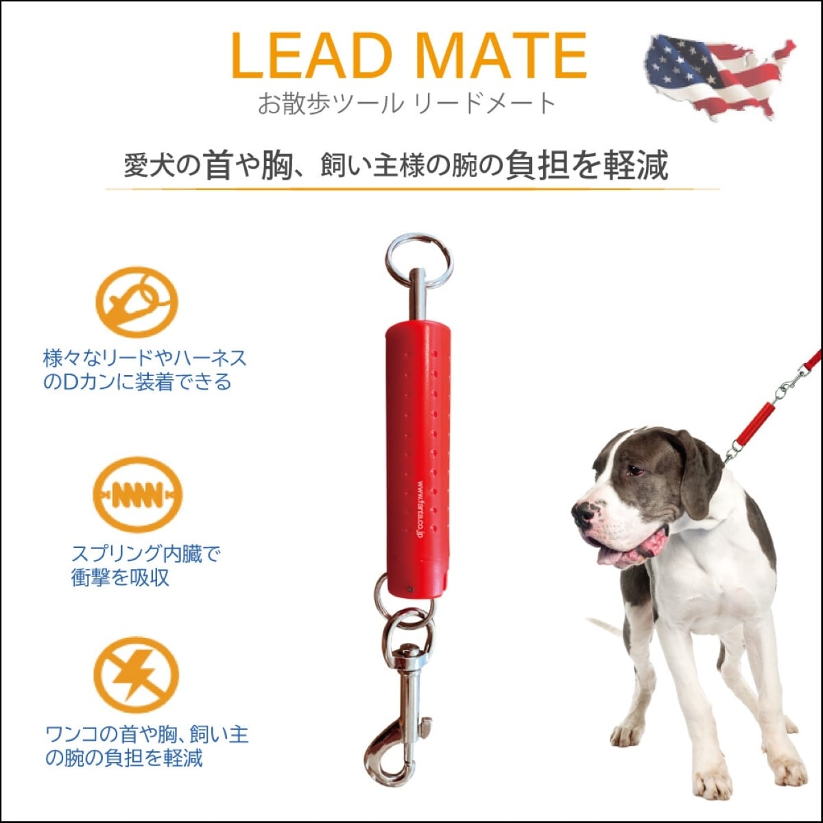 犬用リード便利グッズ リードメート LEAD MATE 衝撃吸収バネ リード 首輪 犬 お散歩ツール