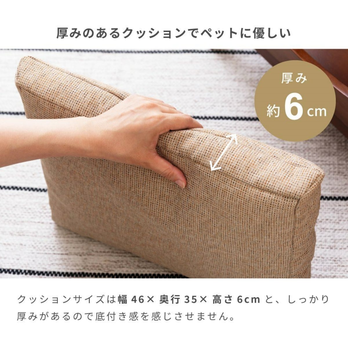 取り外し可能なやわらかいクッションでペットのくつろげる場所になり、上部のテーブルはサイドテーブルとしてもお使いいただけます。