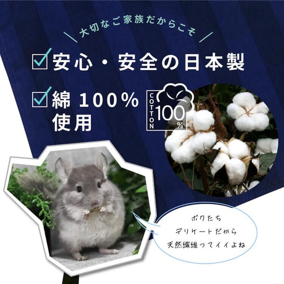 安心の綿100%素材を使用した、もぐれるタイプの小動物用ペットハンモック。41×41cmでゆったり快適、選べるポケット付きでチンチラ・デグー・モルモット・モモンガ・ハリネズミなど多頭飼いにも対応。洗濯OKで清潔に保ちやすく、オールシーズン使えるデザイン。サークルやケージに取り付けられる金具付きで、花柄・北欧柄などおしゃれな柄展開も魅力です。