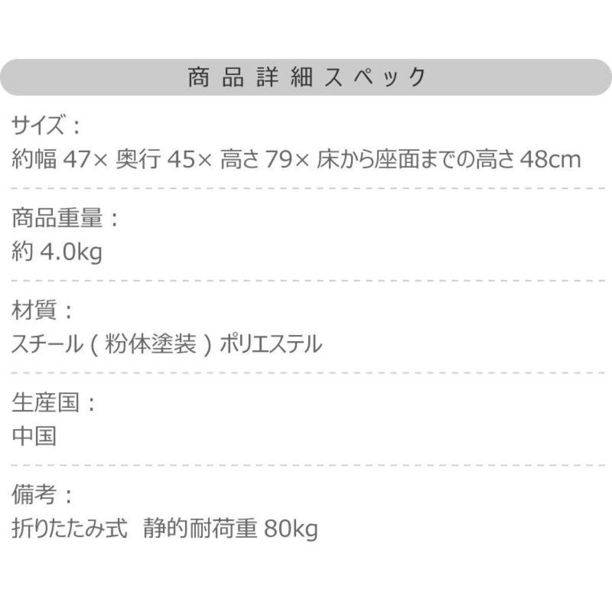 商品サイズ:約幅47×奥行45×高さ79cm(床から座面までの高さ48cm)