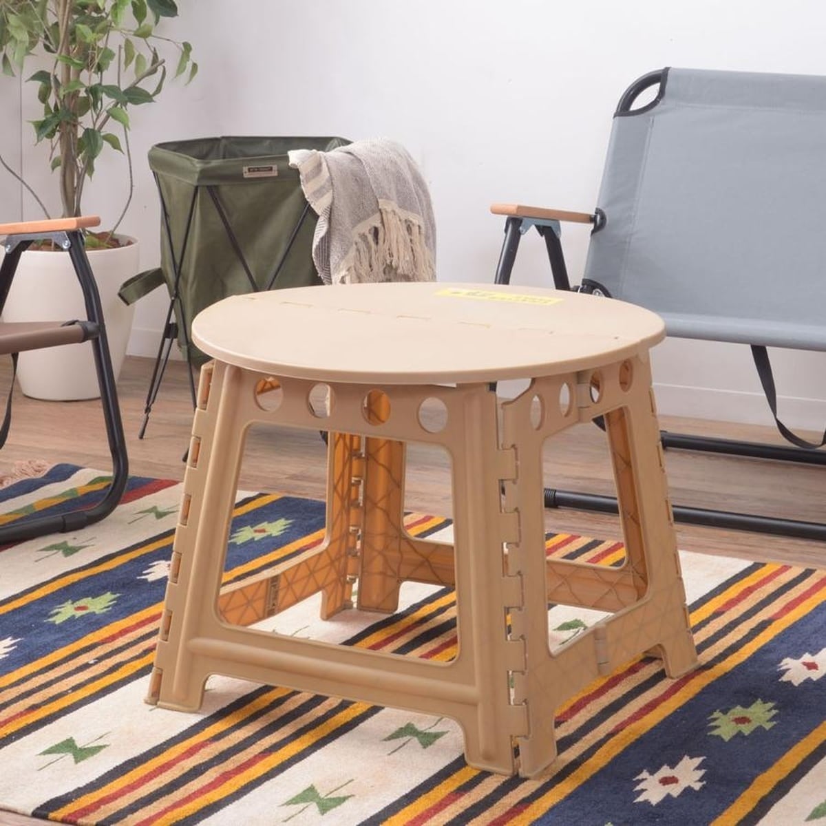 クラフターテーブルの円形フォールディングテーブル。軽量ポリプロピレン製で持ち運びやすく、BBQやキャンプ・ピクニックに最適。折りたたんで厚さ約10cm、収納・設置も簡単。色はナチュラルなサンドベージュ・グリーン・カーキ・ブラックから選べて、屋外でもおしゃれに使える屋根付きテーブルです。コンパクト設計ながら安定感があり、アウトドアライフを快適に彩ります。
