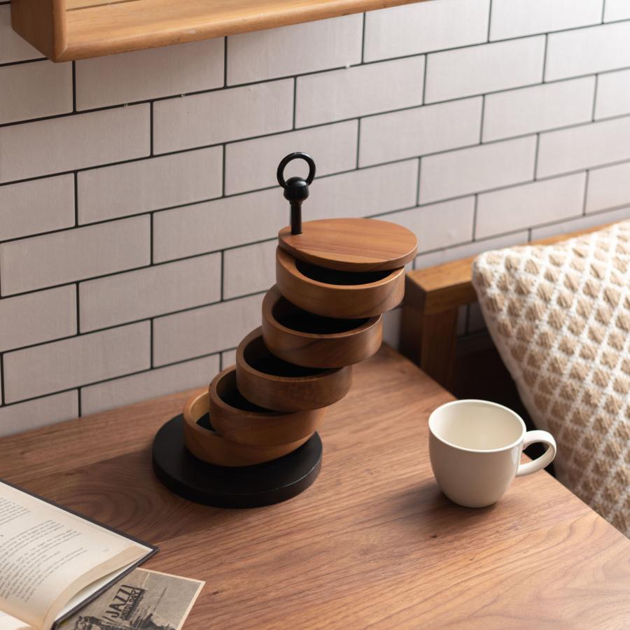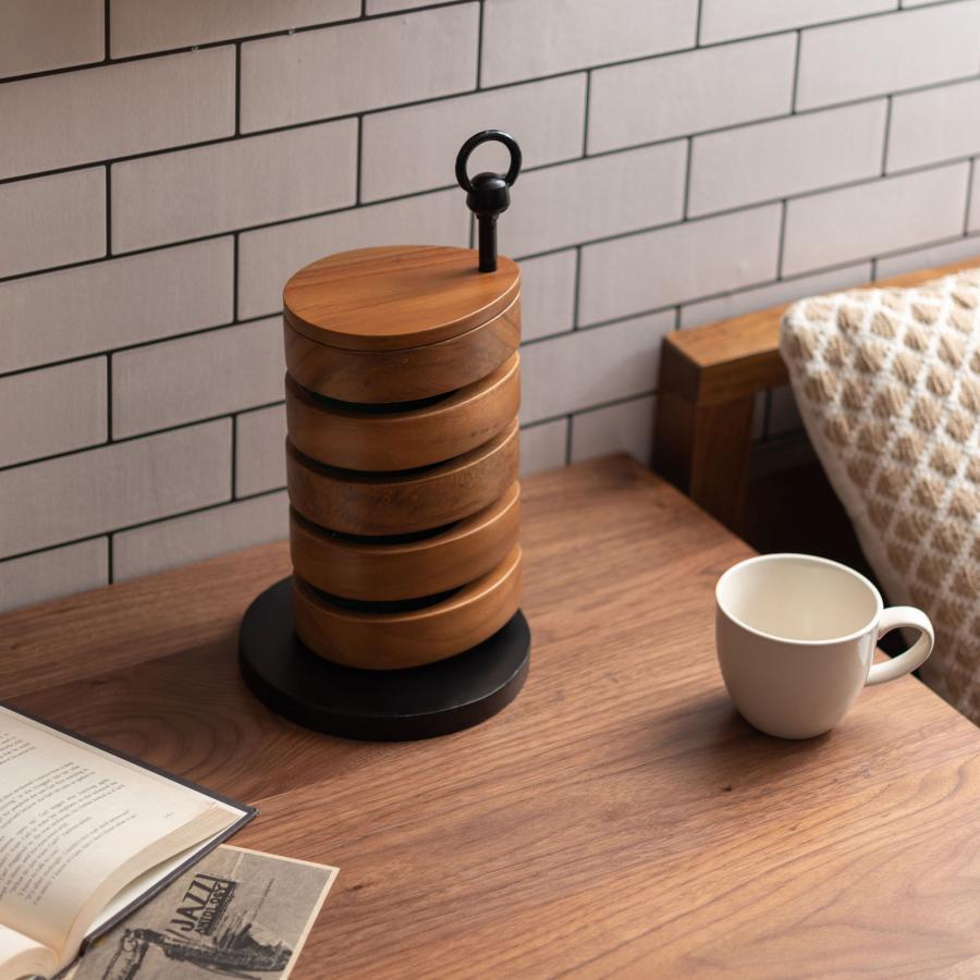 天然木を使用した卓上アクセサリーケース。5段構造でアクセサリーや小物をすっきり収納でき、サークル型とスクエア型から選べます。アンティーク調のお洒落なデザインで、置くだけで空間を上質に演出。省スペースな卓上サイズで、玄関やデスク、ドレッサーにもぴったり。実用性とインテリア性を兼ね備えた、ギフトにもおすすめの収納アイテムです。