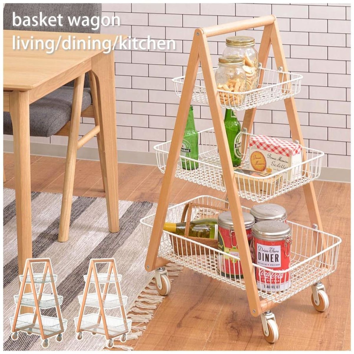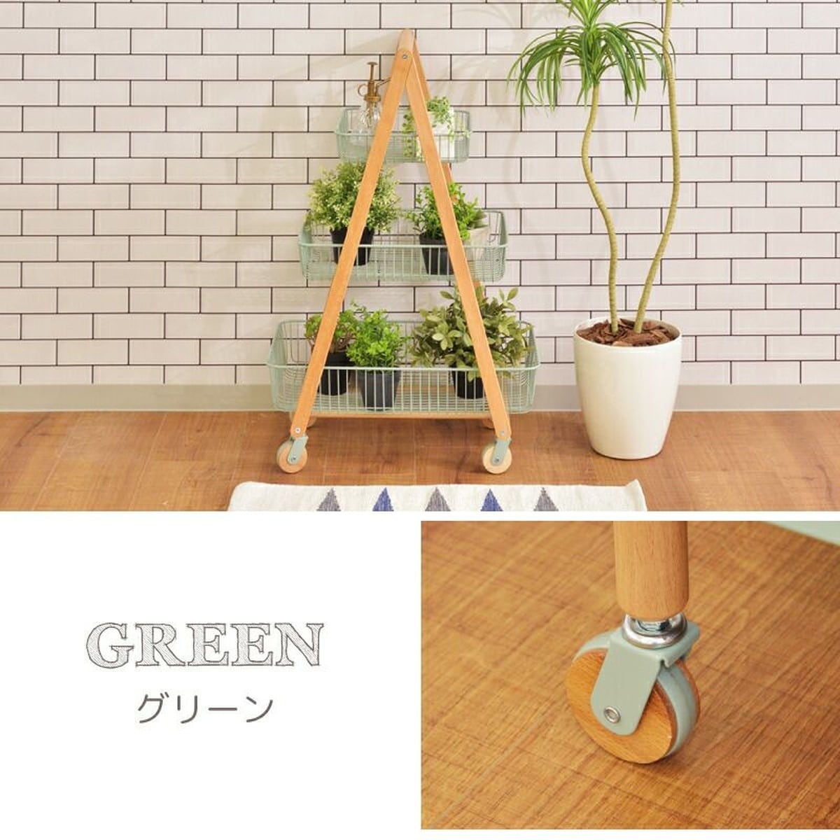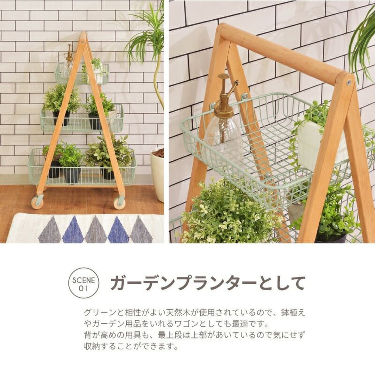 バスケットワゴン キッチンワゴン ガーデンプランター 天然木 スチール 北欧 ナチュラル キャスター付き 棚 観葉植物