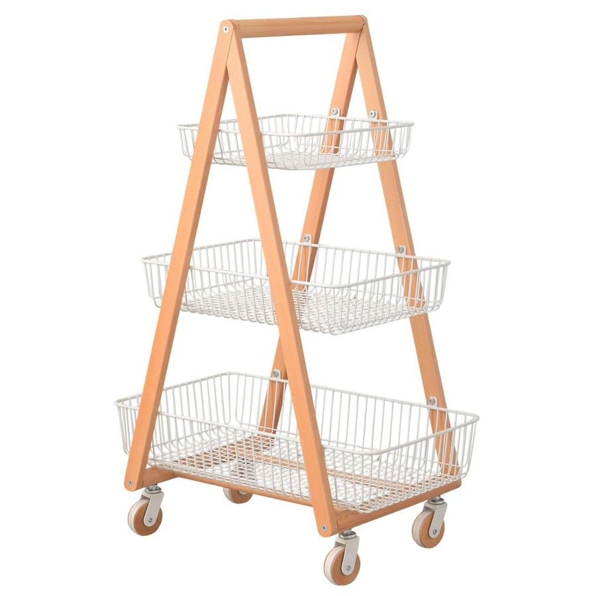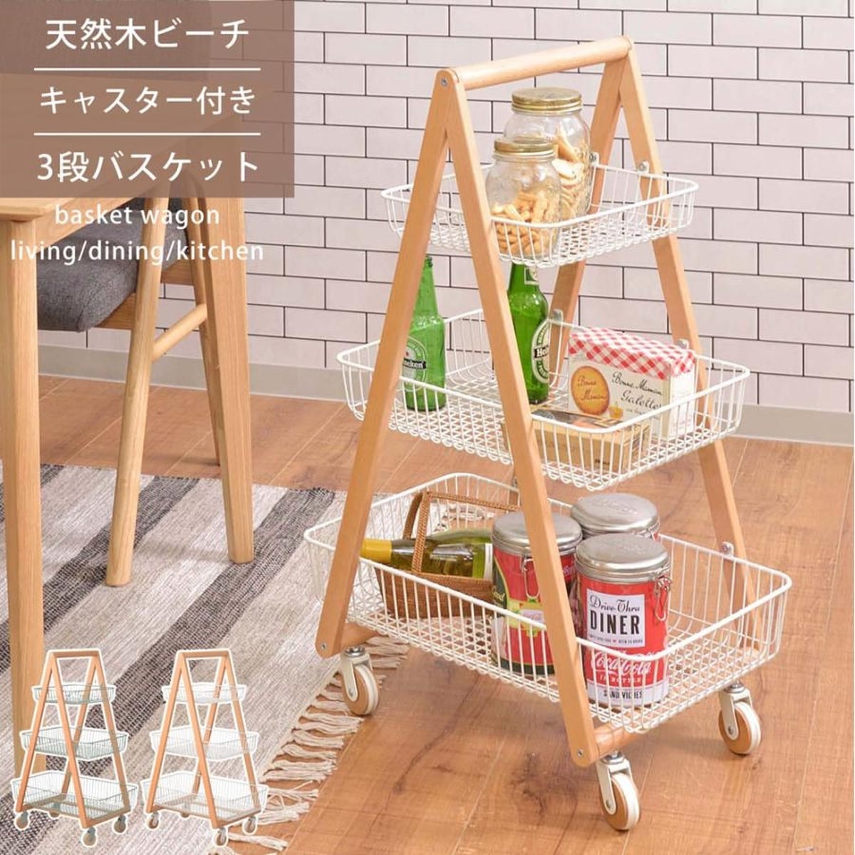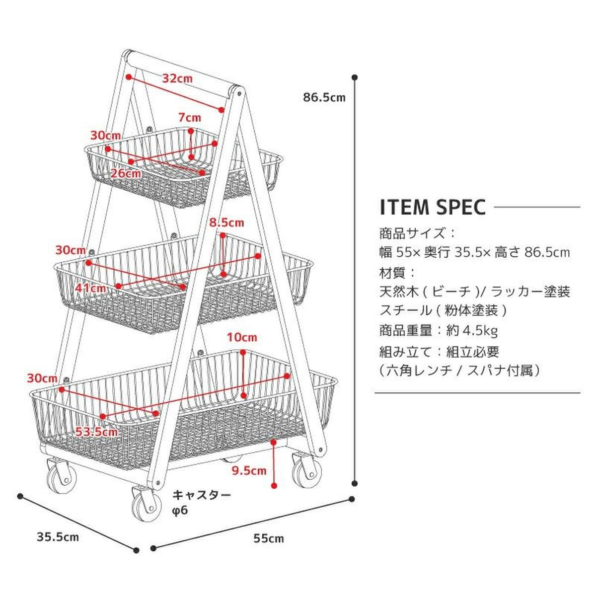 バスケットワゴン キッチンワゴン ガーデンプランター 天然木 スチール 北欧 ナチュラル キャスター付き 棚 観葉植物