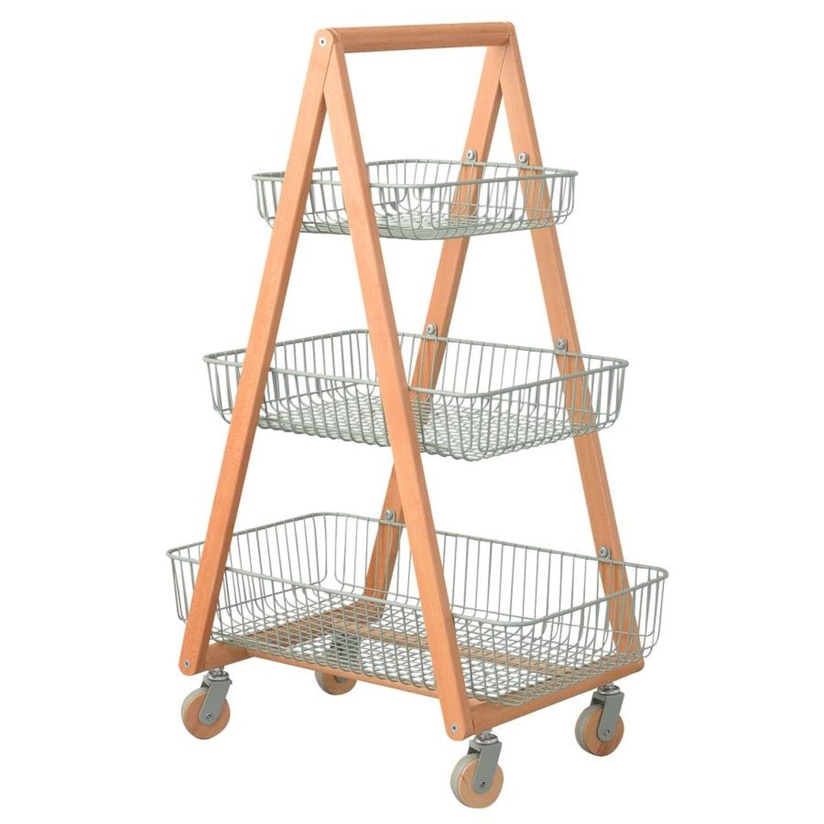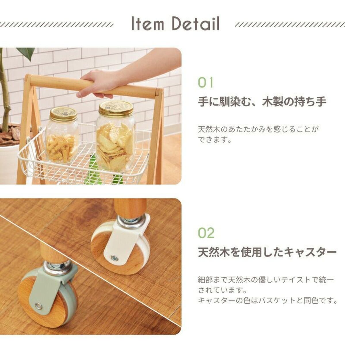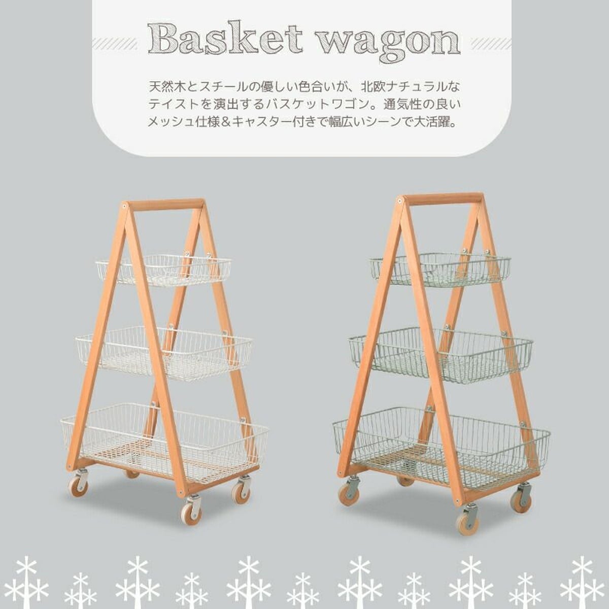 天然木×スチールの組み合わせが美しいバスケットワゴン。キッチンワゴンやガーデンプランターとして使える2WAY仕様で、キャスター付きなので移動もラクラク。ナチュラルな北欧テイストがインテリアに調和し、観葉植物やフェイクグリーンのディスプレイにも最適。テーブルサイドの収納ラックや棚としても便利で、おしゃれな空間を演出します。組立も簡単です。