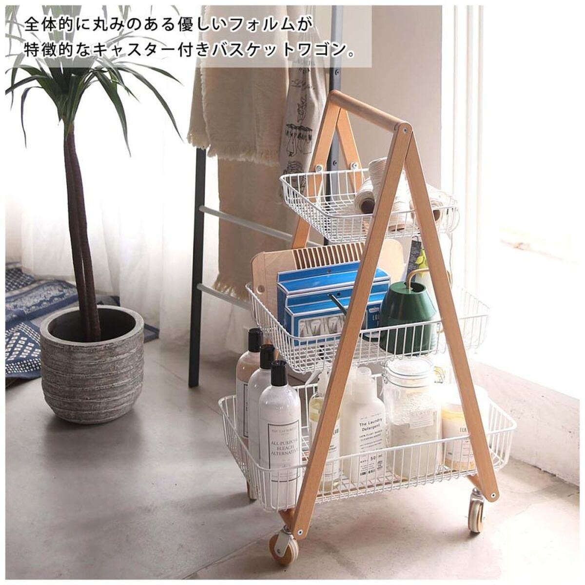 ●全体的に丸みのある優しいフォルムが特徴的なキャスター付きバスケットワゴン。