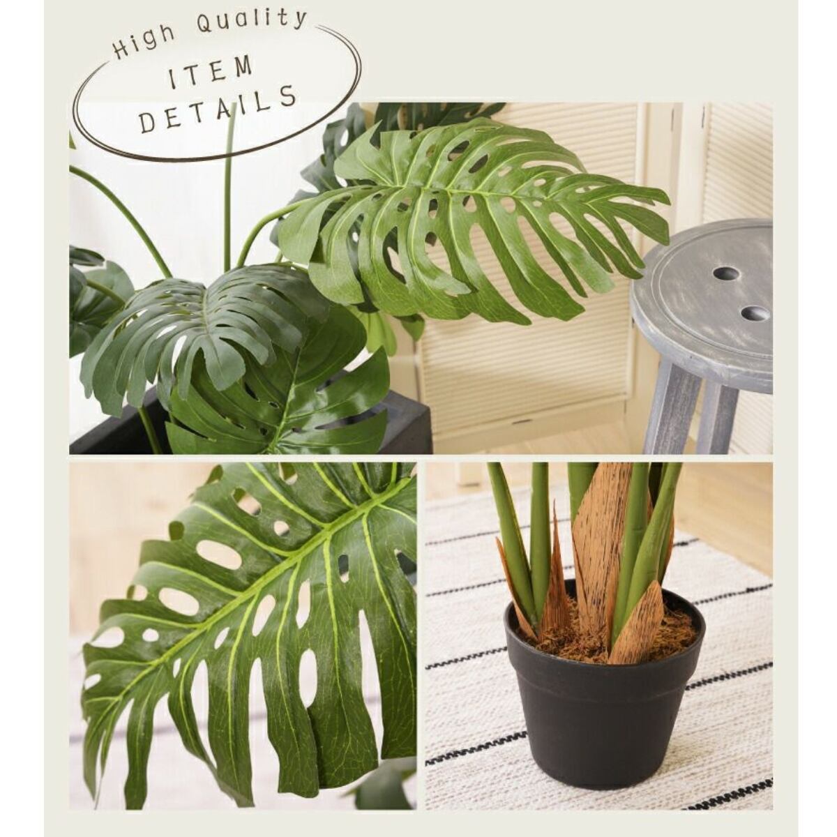 リアルな質感のモンステラ型フェイクグリーンは、人工観葉植物として室内インテリアに自然な癒しをもたらします。大きめのリーフが空間を華やかに演出し、リビングや玄関、ガーデン雑貨としても活躍。水やり不要でお手入れも簡単。おしゃれでモダンな雰囲気を演出できる飾りとして、置くだけで洗練されたグリーン空間が完成します。